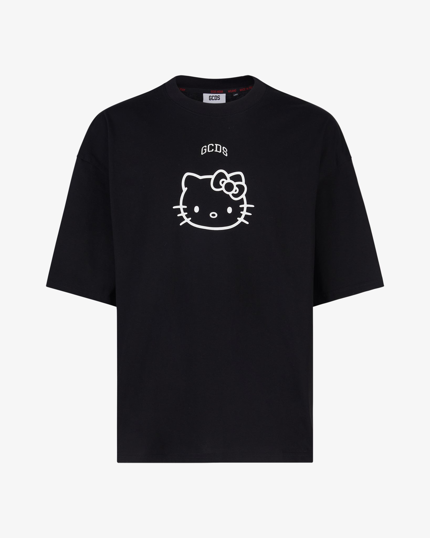 Loose fit T-shirt with a round neck and short sleeves. The contrasting Hello Kitty print adds a distinctive element to the overall design.