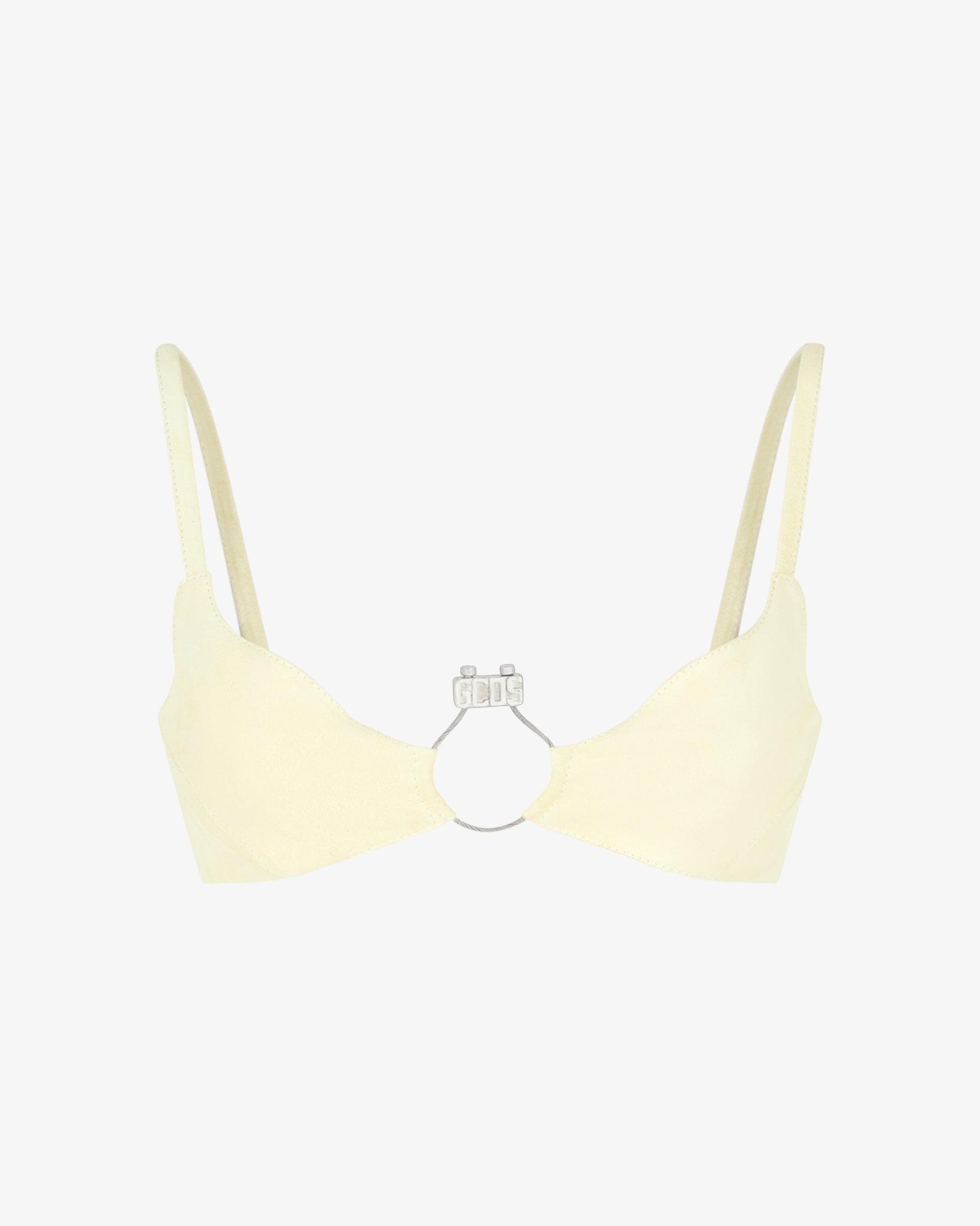 Suede mini bra with a logoed Hoop detail at the center. Thin straps and logoed clip closure at the back.