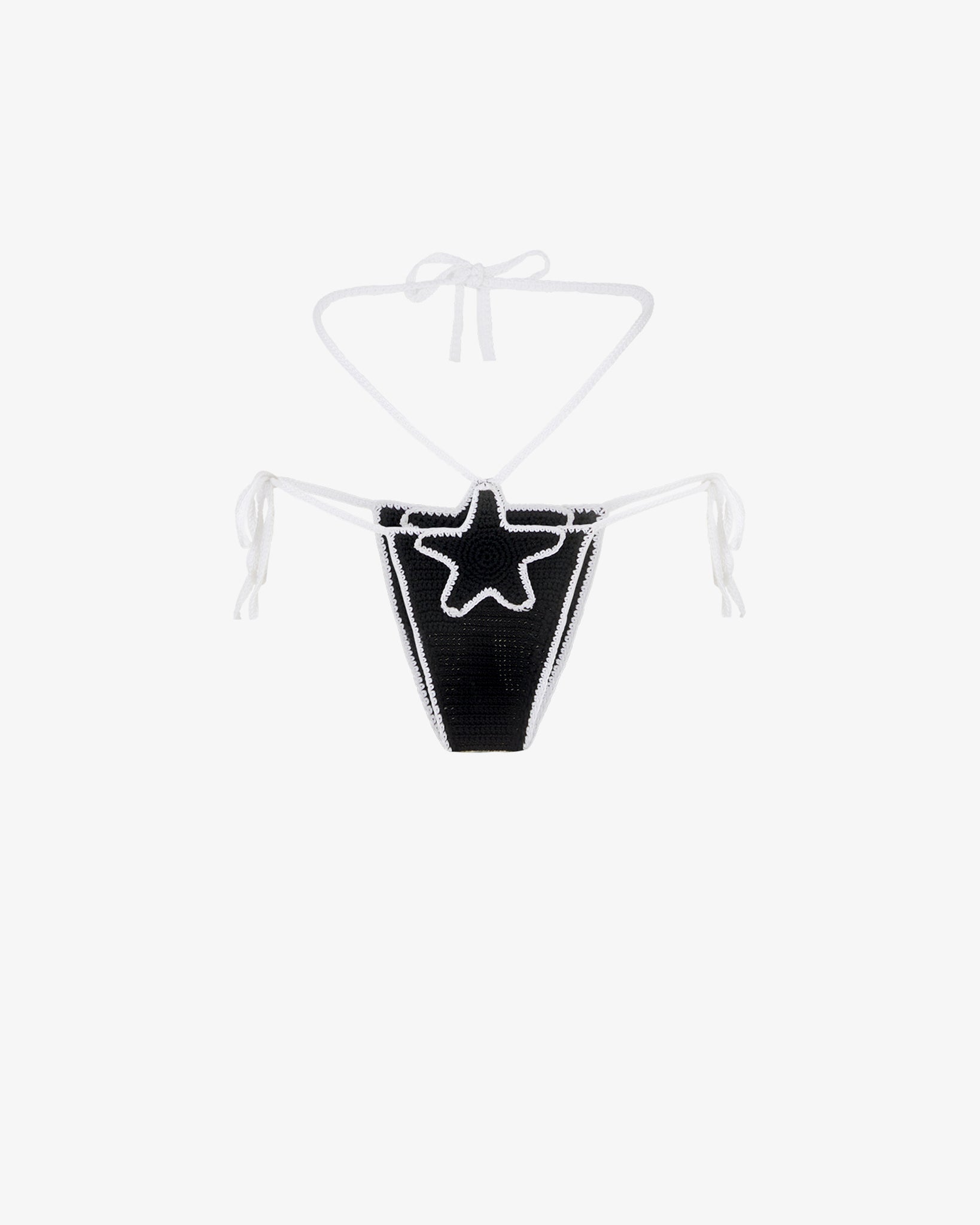 Cotton crochet briefs with a multicolored Star graphic. Side closures with a double line of contrasting crochet bows.