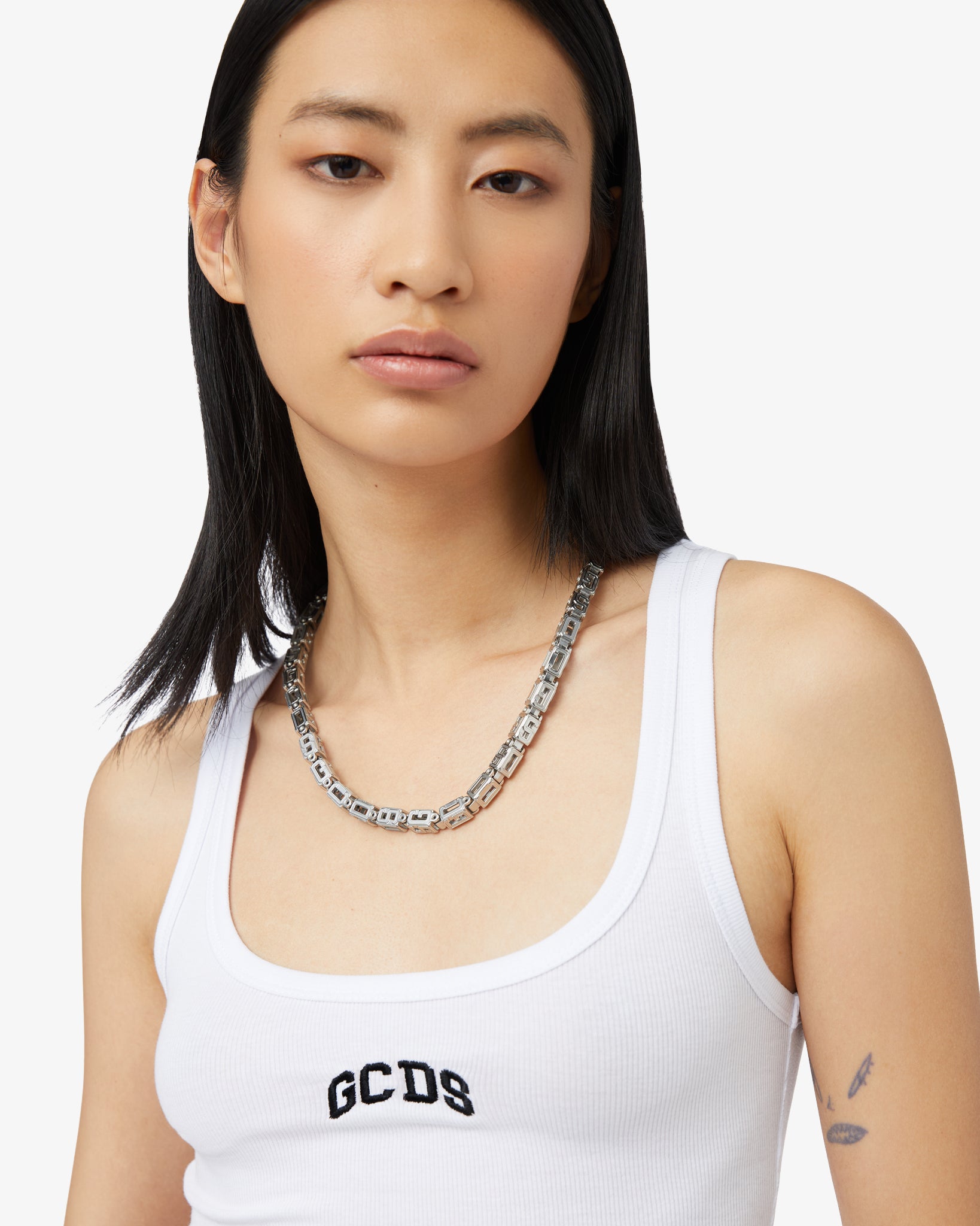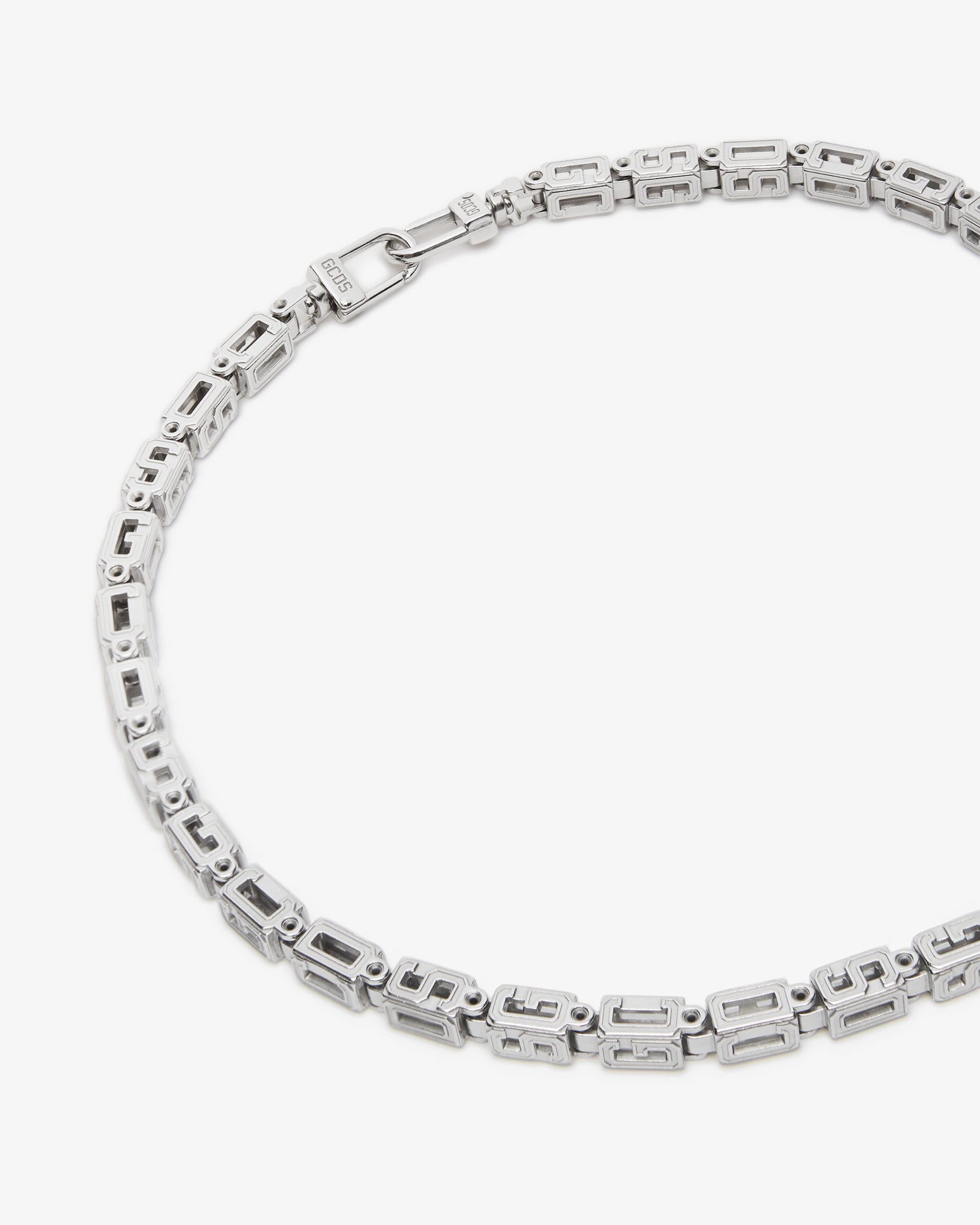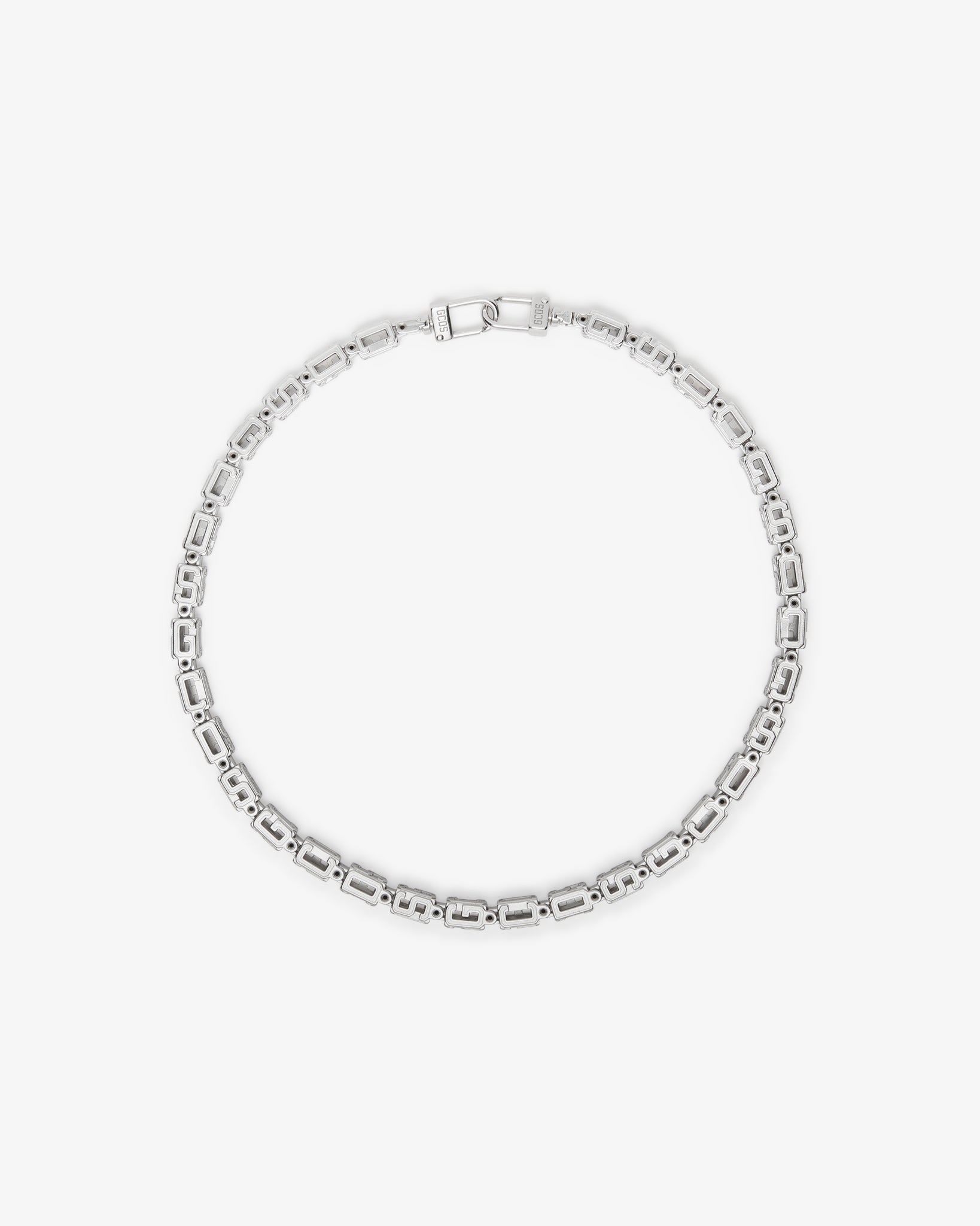 Necklace with metallised "GCDS Cube" chain module. Clasp with logoed snap hooks.