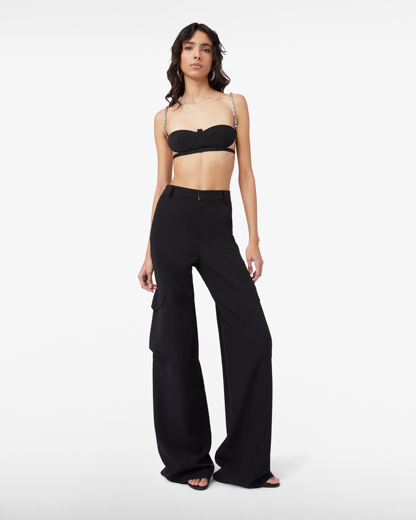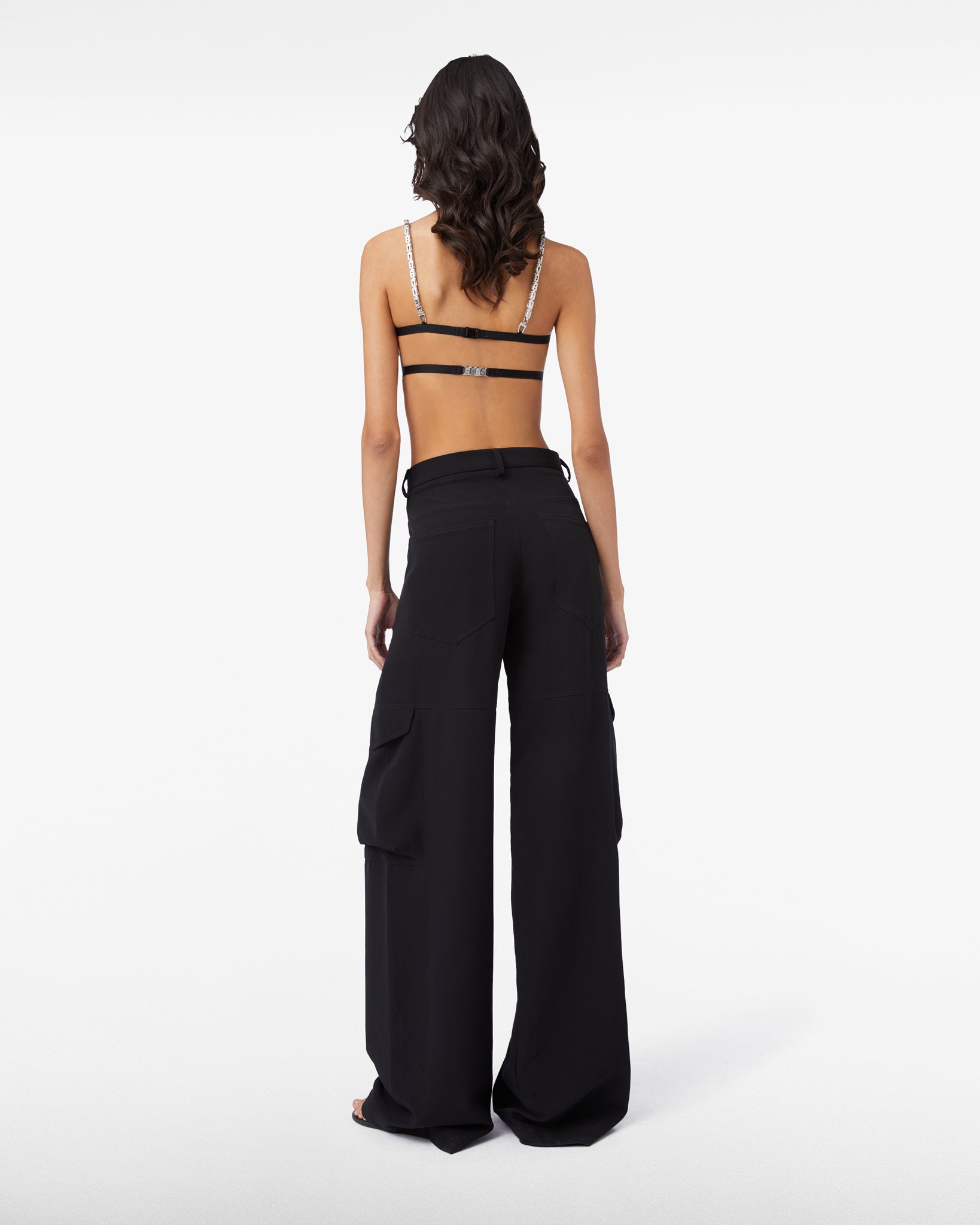 Ultracargo pants in viscose cady, featuring side cargo pockets. The front closure with a hidden hook contributes to maintaining a clean line with no visible seams. Oversized fit.