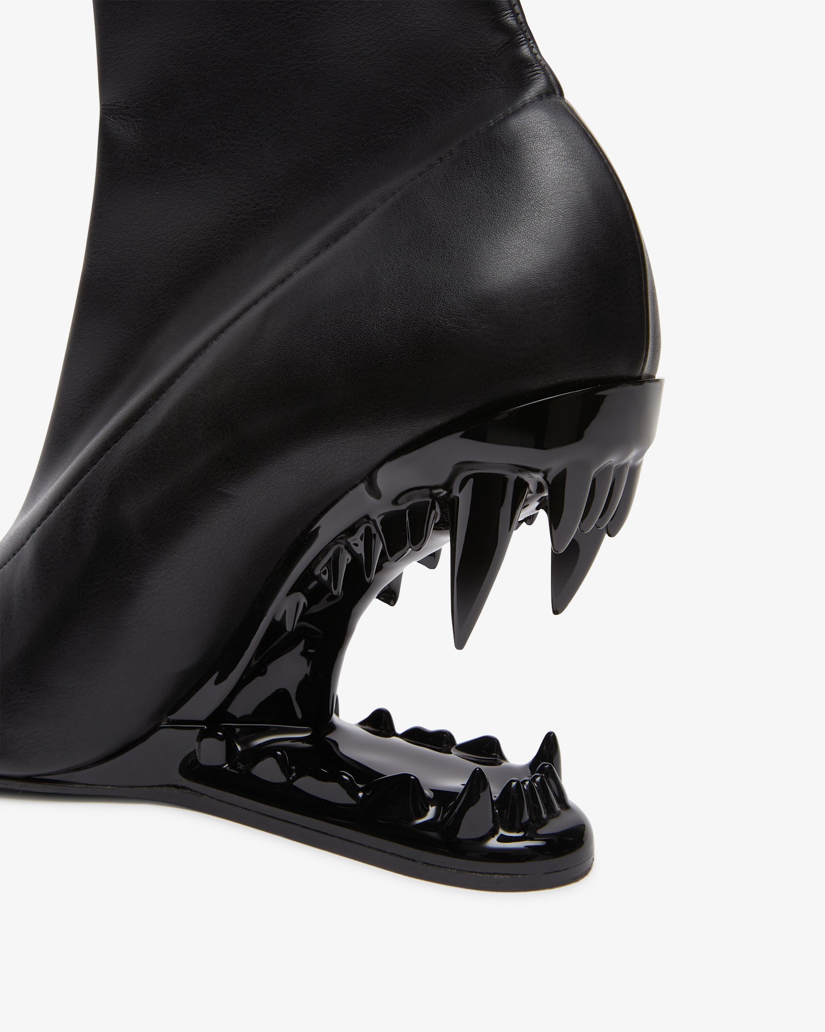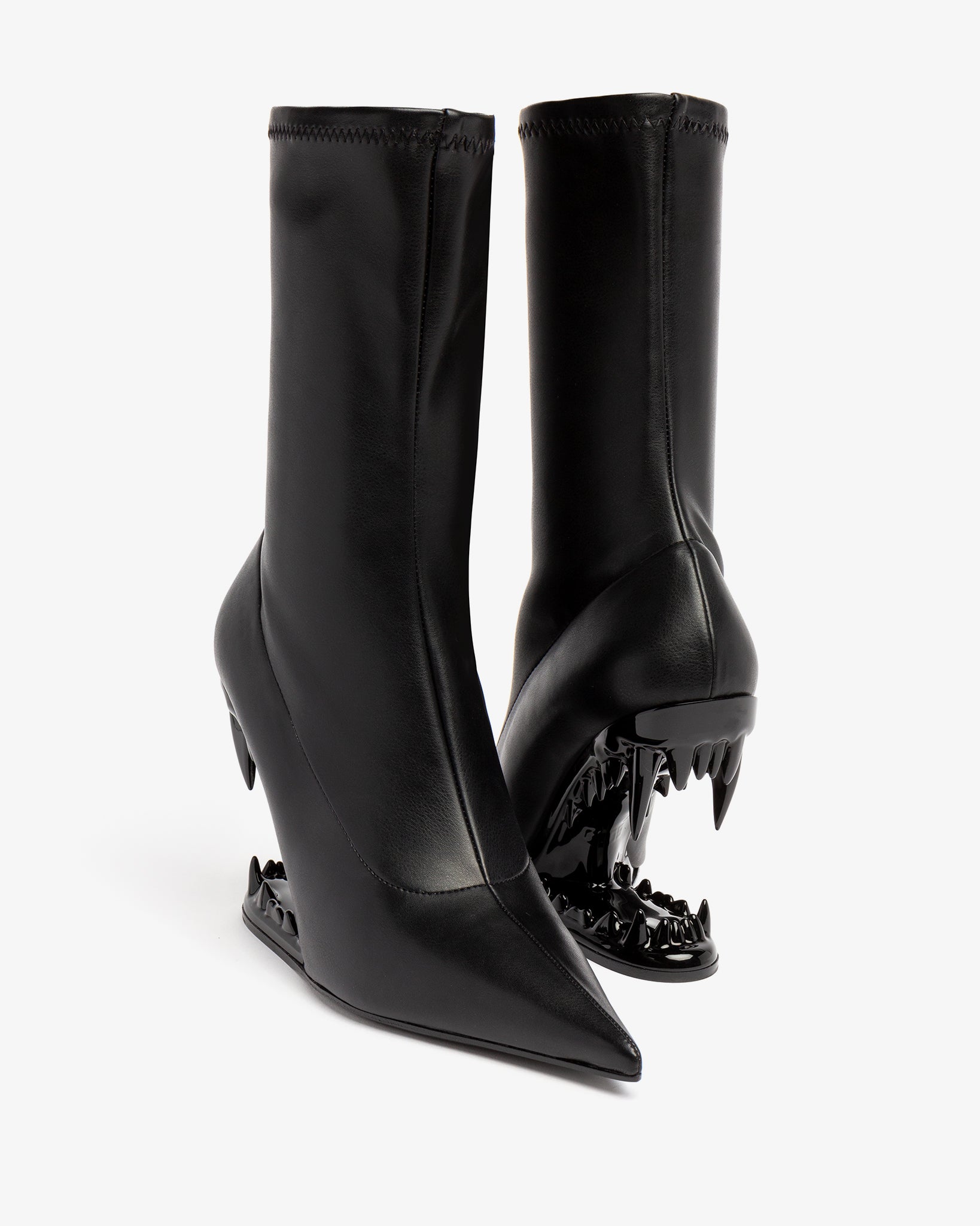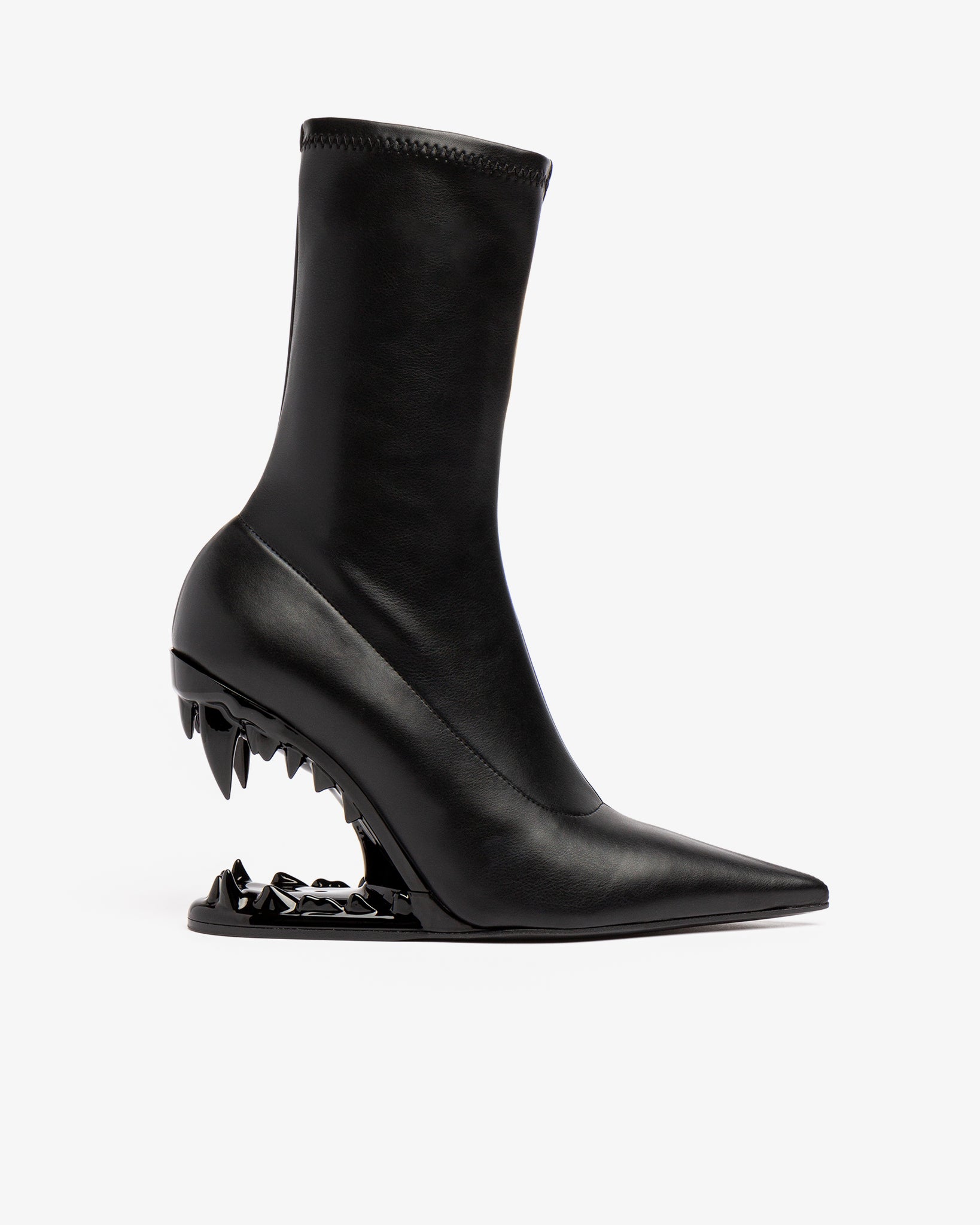 Black faux nappa stretch ankle boots featuring the iconic lacquered Morso heel in matching tone.