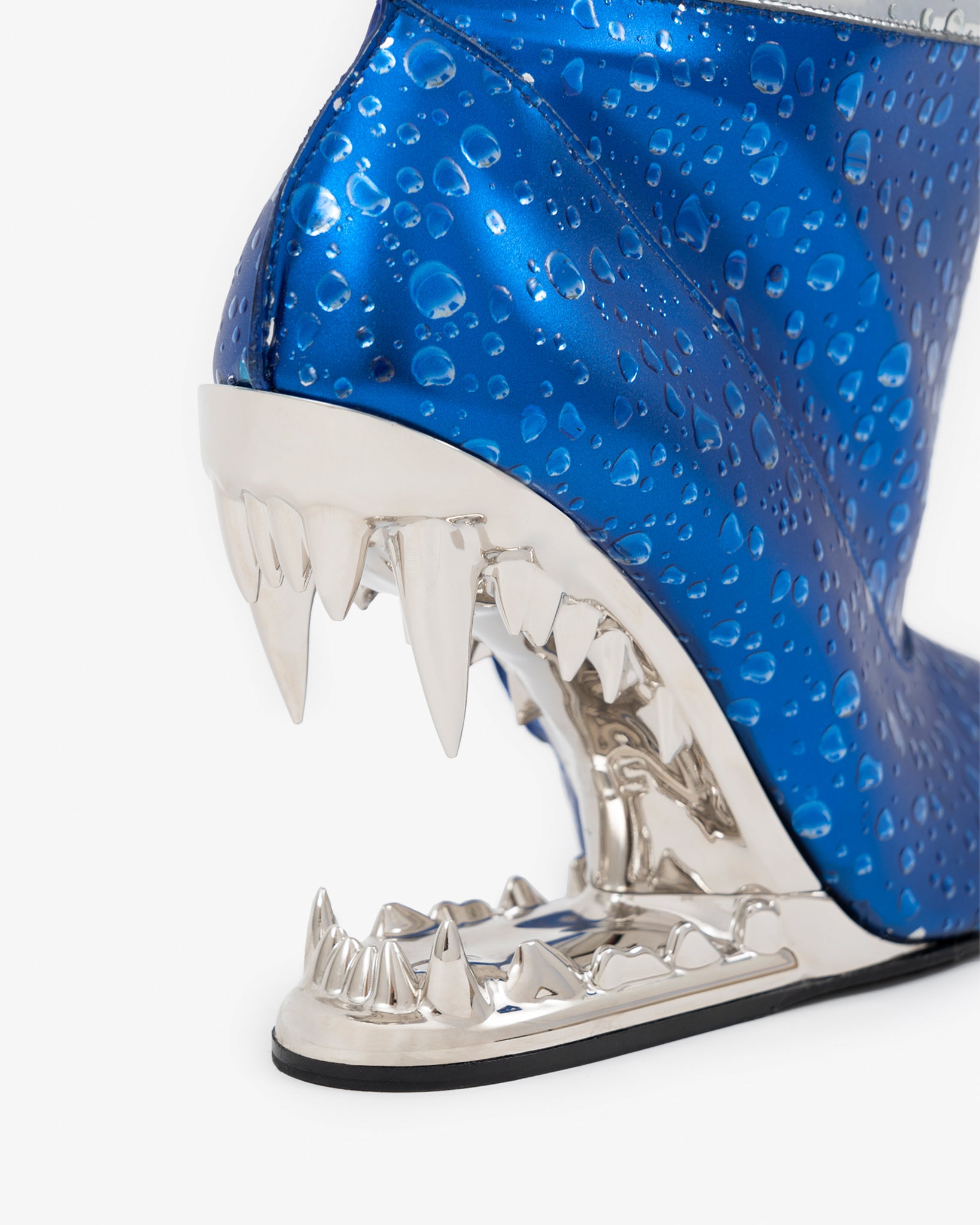 GCDS x Pepsi limited edition wide boots featuring the iconic Morso heel, and Pepsi colours. Comes with an all-over soda bubbles print.