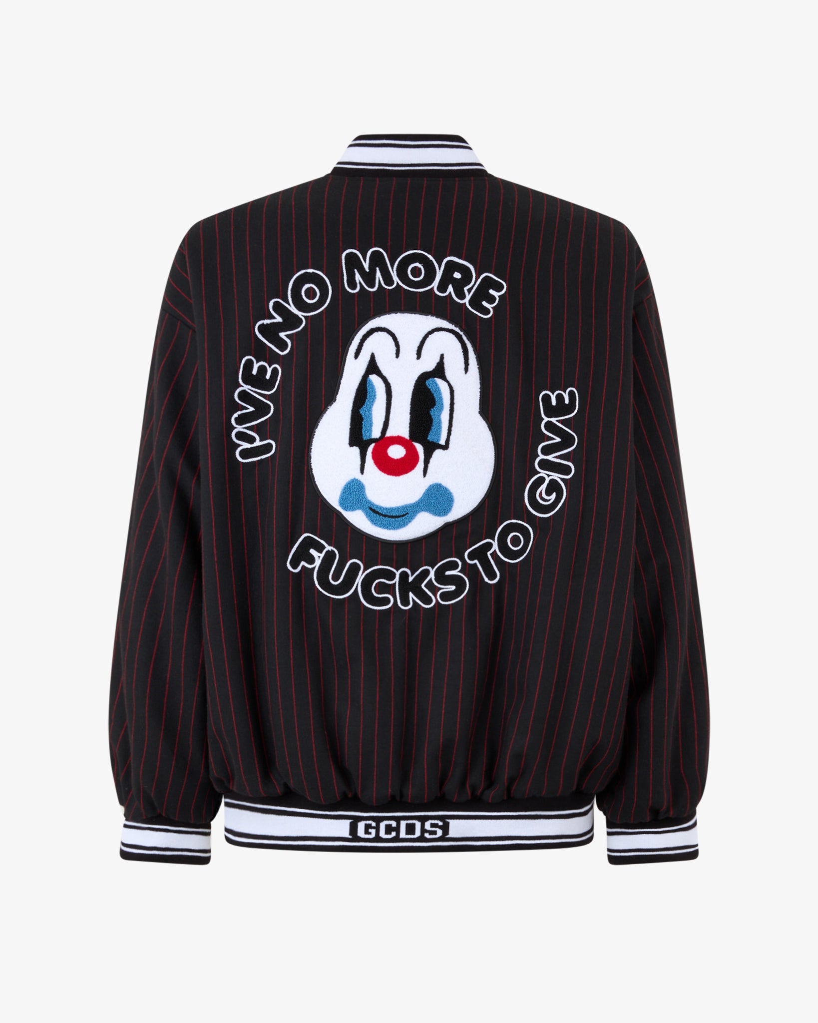 Skip to contentStriped flannel bomber jacket features an embroidered clown face on the back and a logo on the front. Made from high-quality flannel, it combines playful design with comfort.
