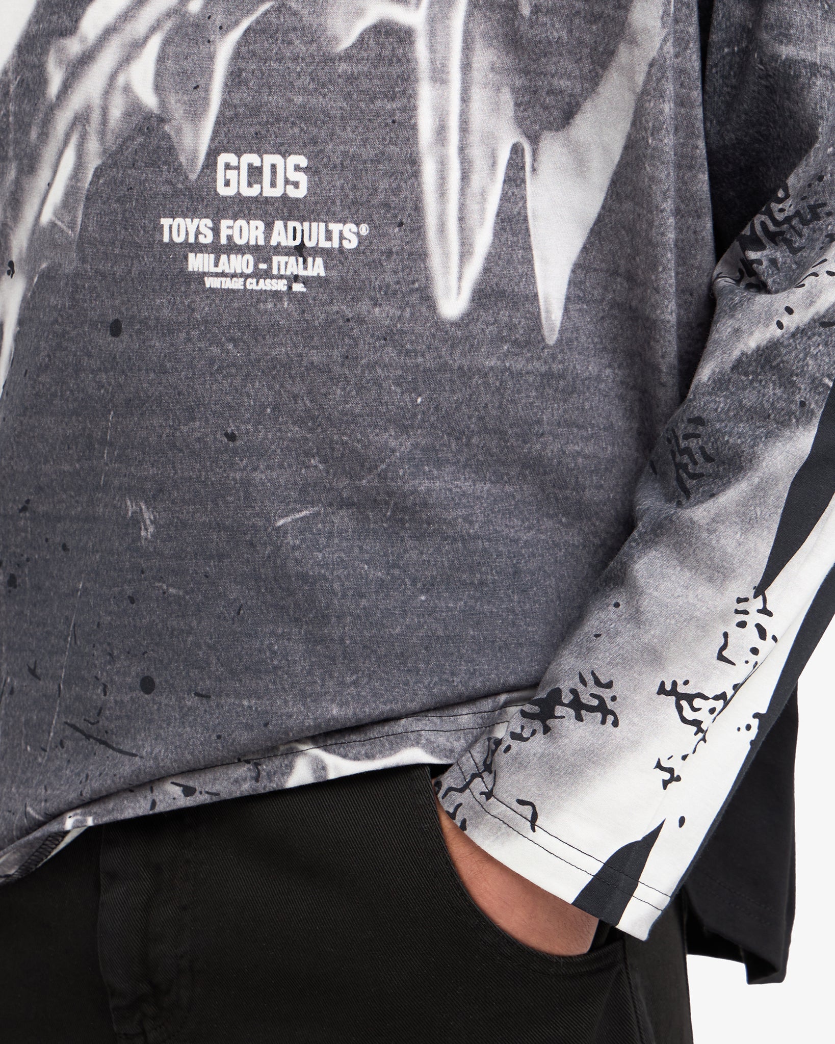 Skip to contentLong sleeve t-shirt featuring an all-over digital "Morso" print on the front and plain fabric on the back.