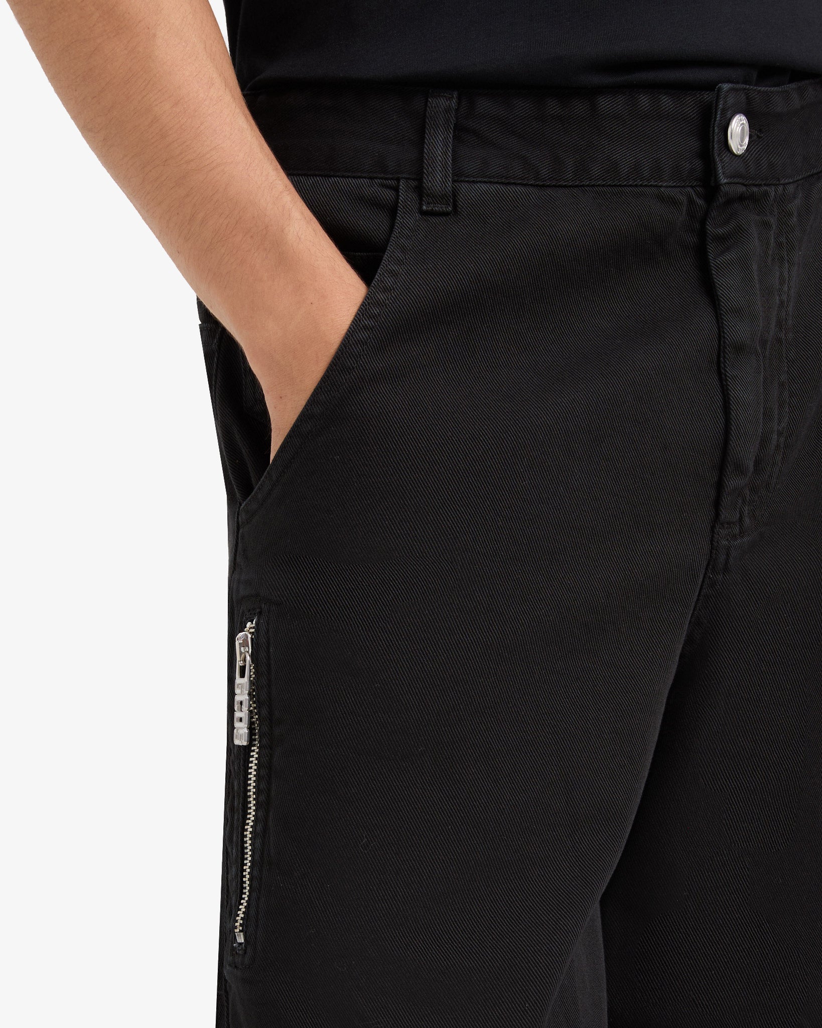 Skip to contentCotton gabardine ultracargo trousers with side cargo pockets. Zipped pocket and zipper pull on the right hip.