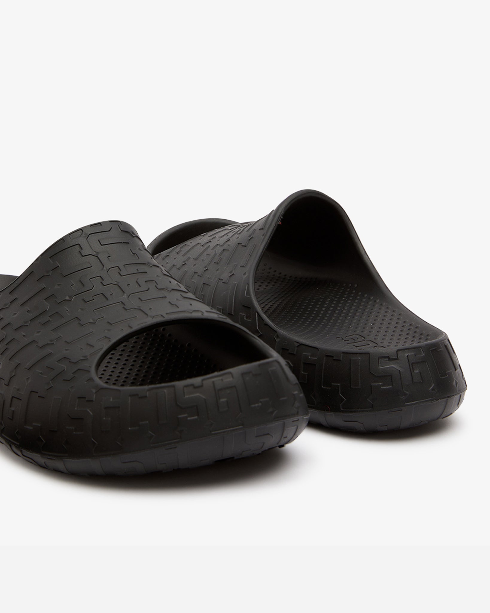 Rubber slides featuring a slip-on design and embossed all-over GCDS Monogram pattern. Crafted from rubber, these slides offer comfort with a dotted texture footbed and feature a logo heat-stamped on the sole.