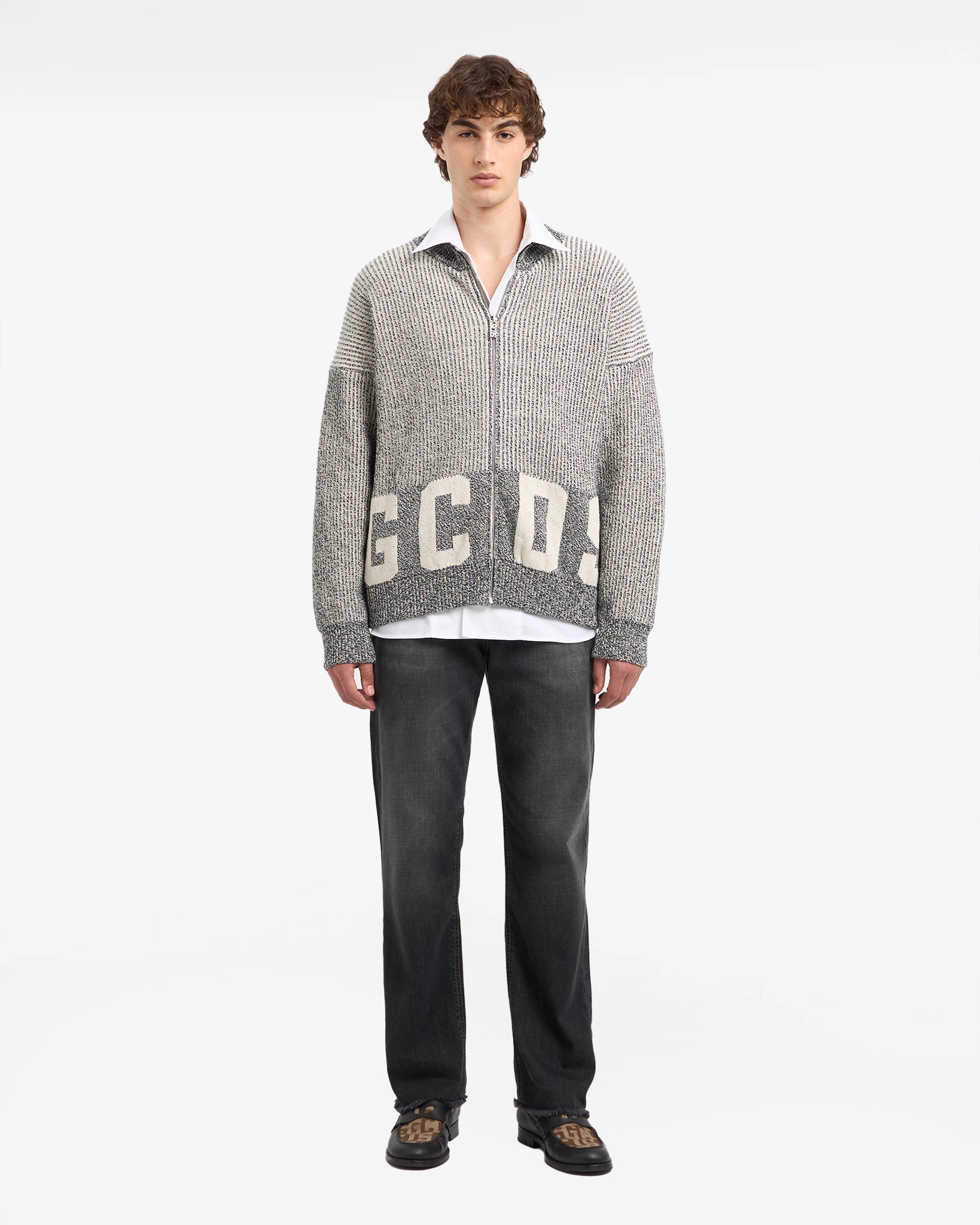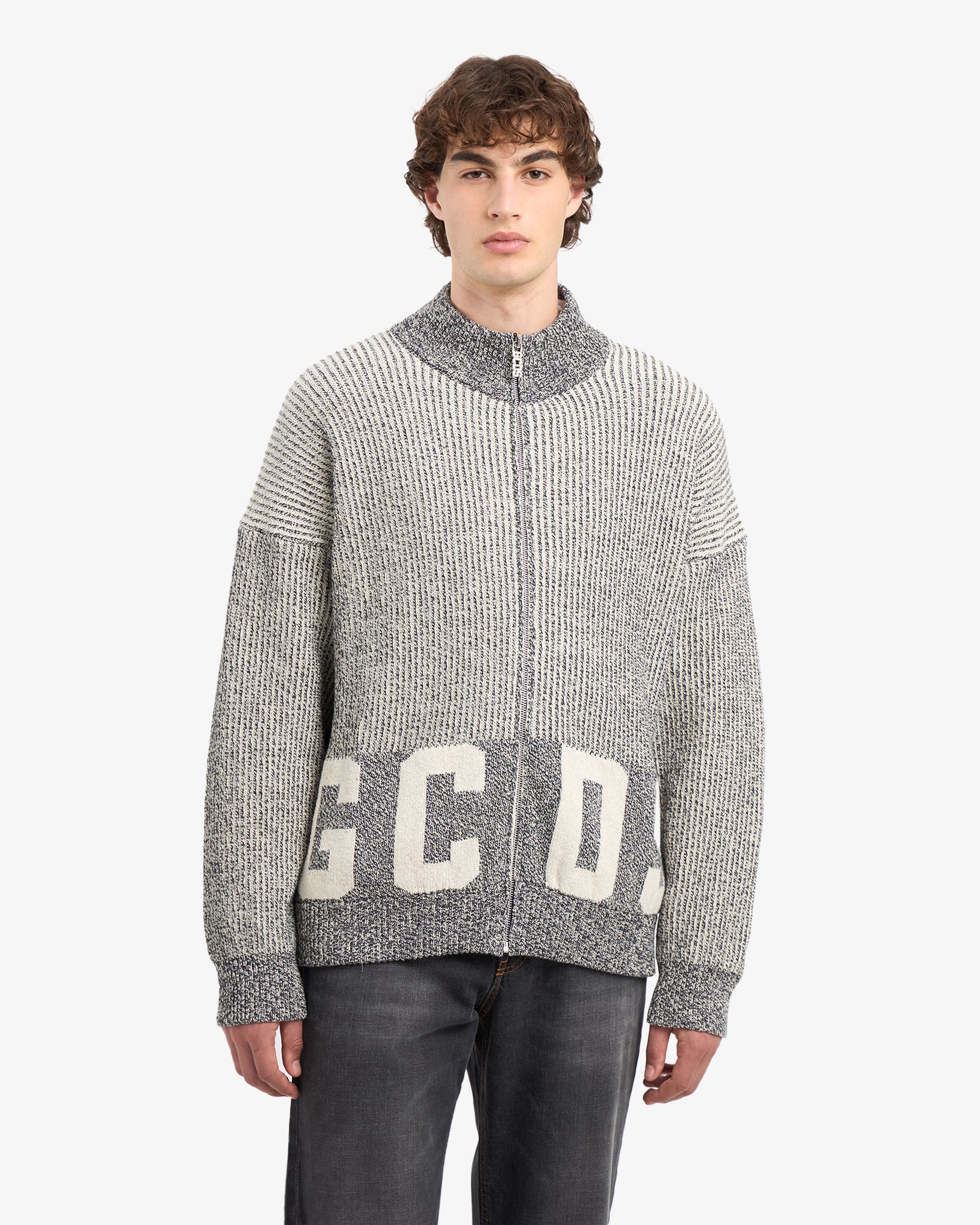 Ribbed Low Logo Full Zip Cardigan
