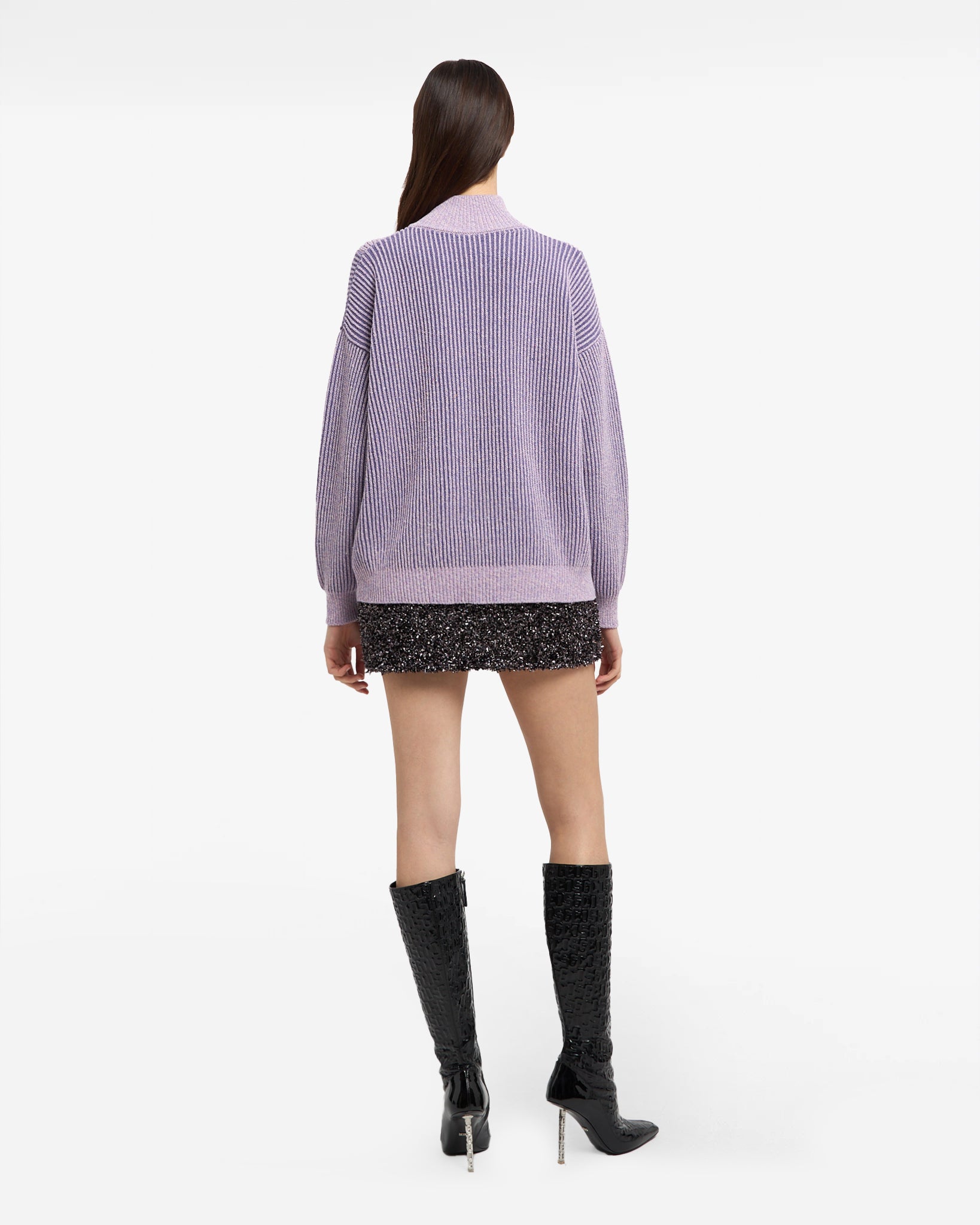 Zipper turtleneck sweater made of soft wool blend with shaved knit. Ribbed collar, cuffs and bottom hem. Regular fit.