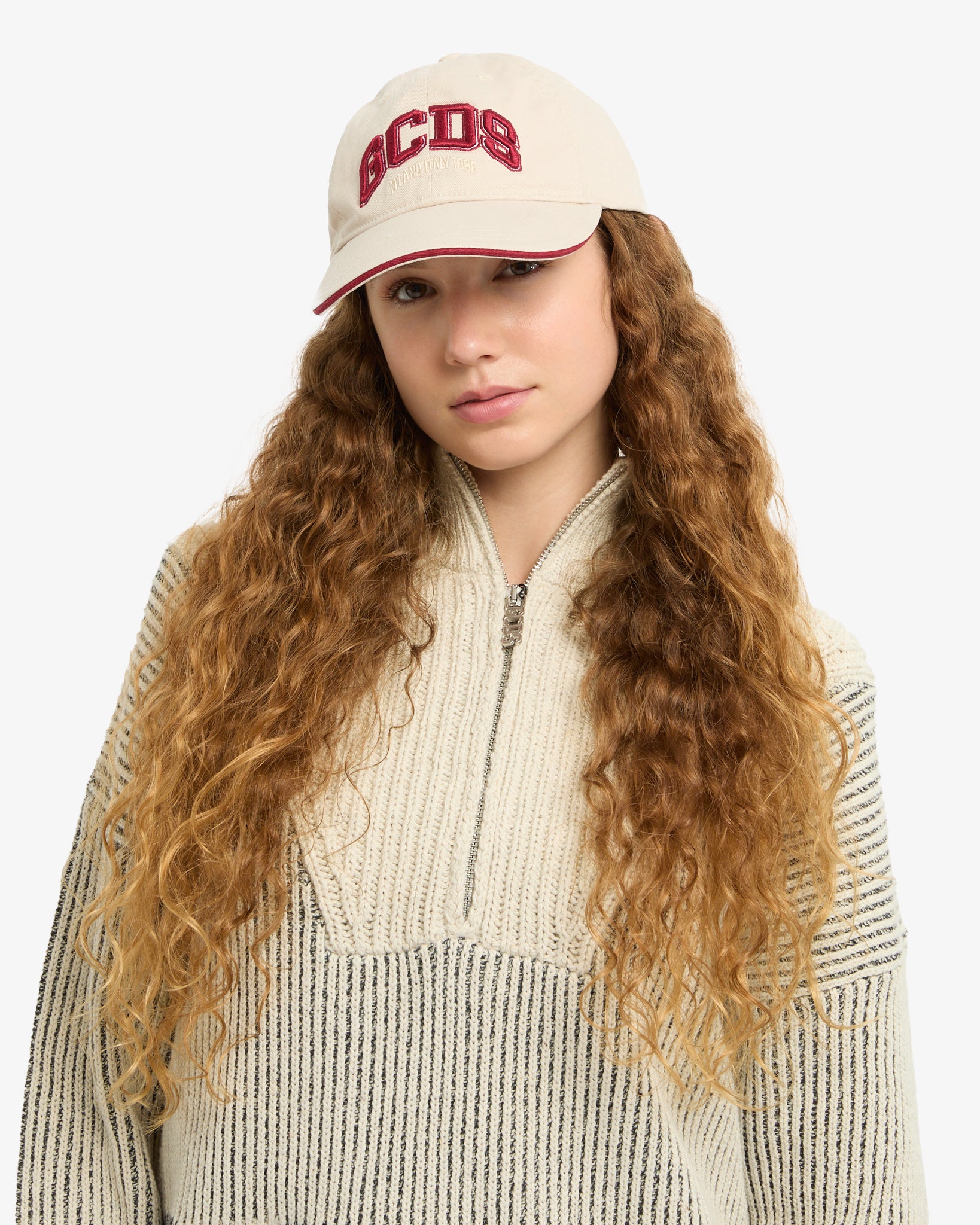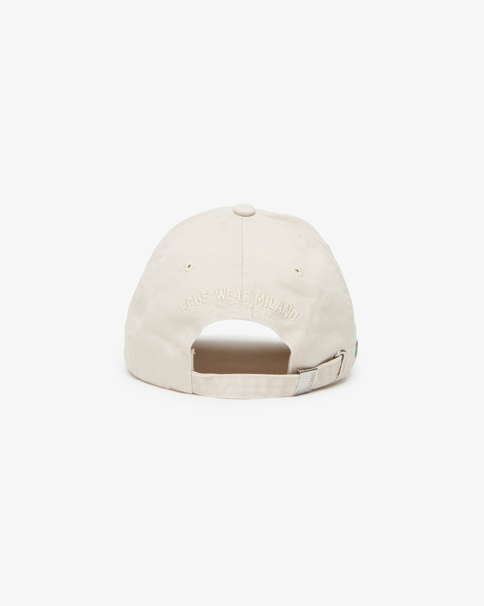 Cotton gabardine baseball cap with 3D "GCDS Lounge" logo embroidery. Matching lining with logoed grosgrain inserts. Adjustable on the back with metal plate.