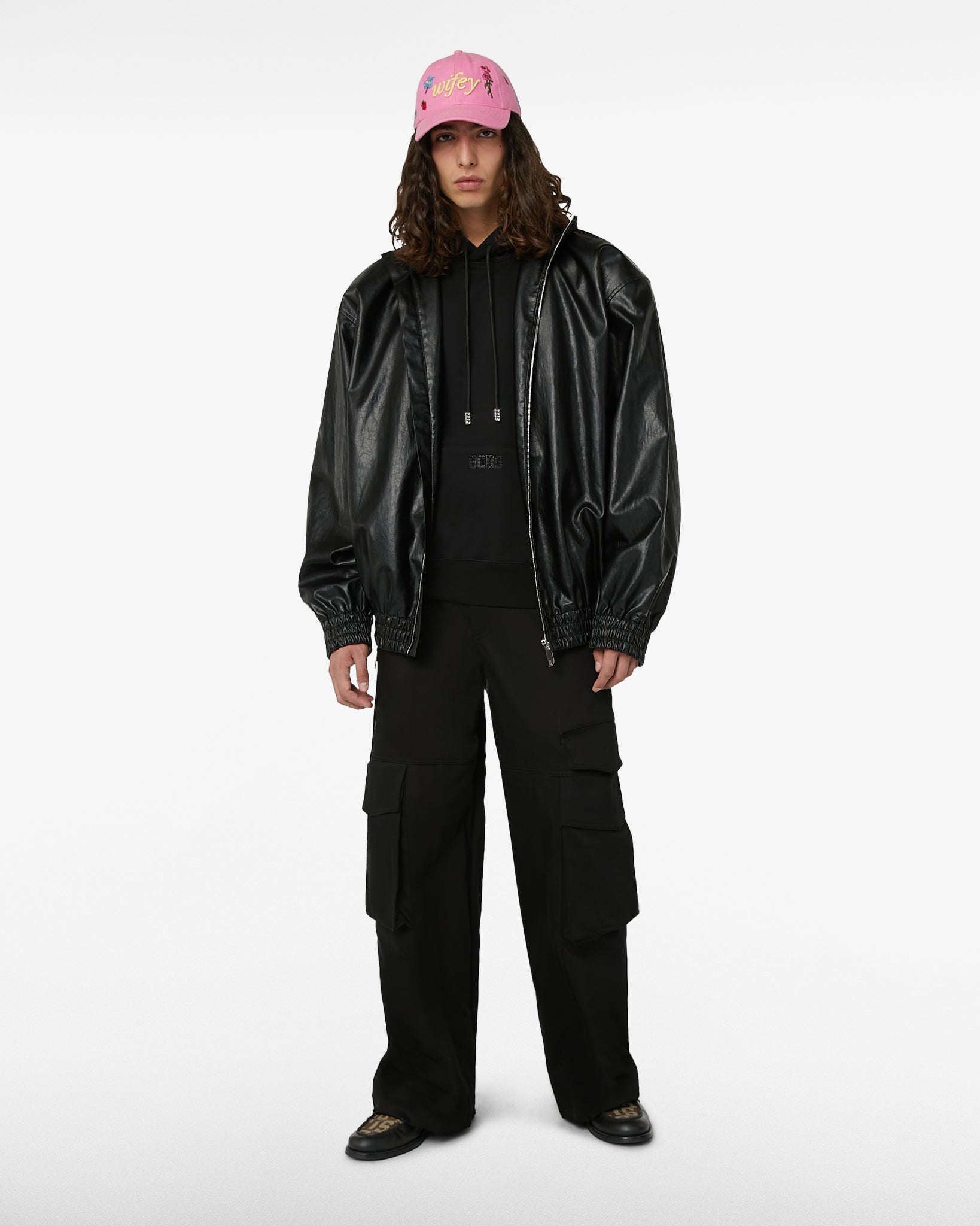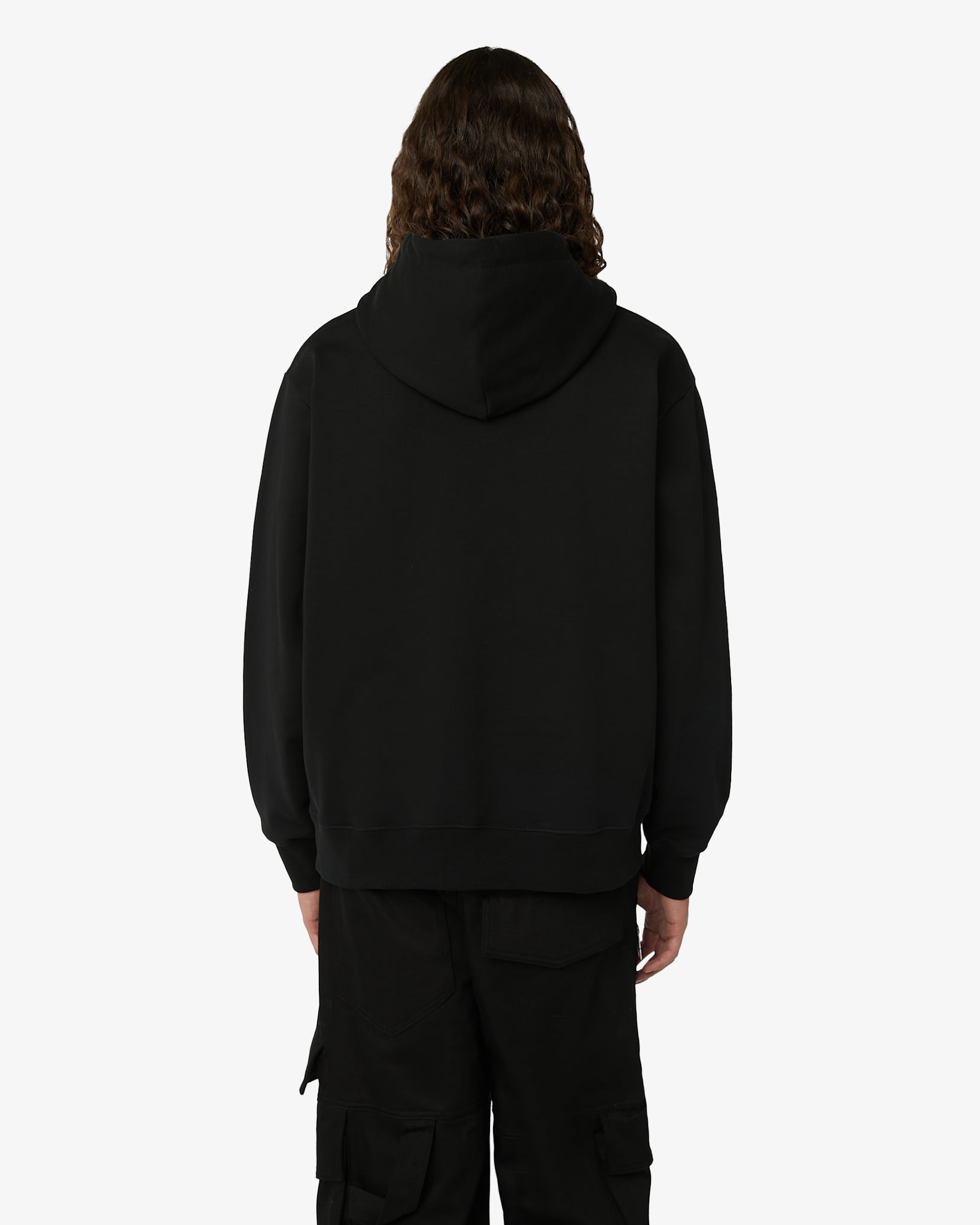 Organic cotton long-sleeved oversized sweatshirt with adjustable hood and logoed cord aglets. GCDS logo applied on the center of the pouch pocket and at the back, on the center of the hood.