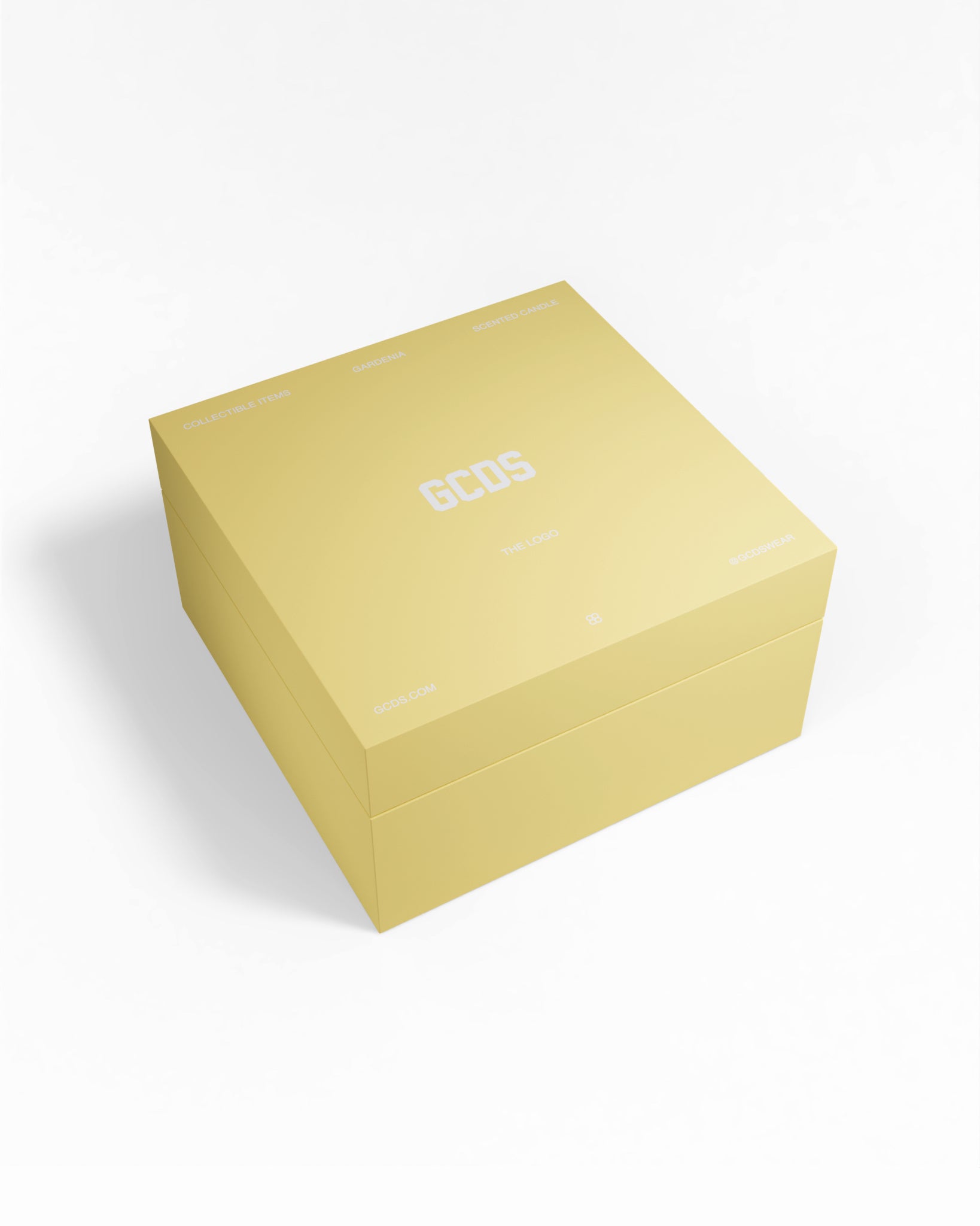 The Gcds logo candle is crafted from yellow-hued wax. The candle featuring notes of Gardenia, one wood wick and comes with a Gcds costumized gift box.