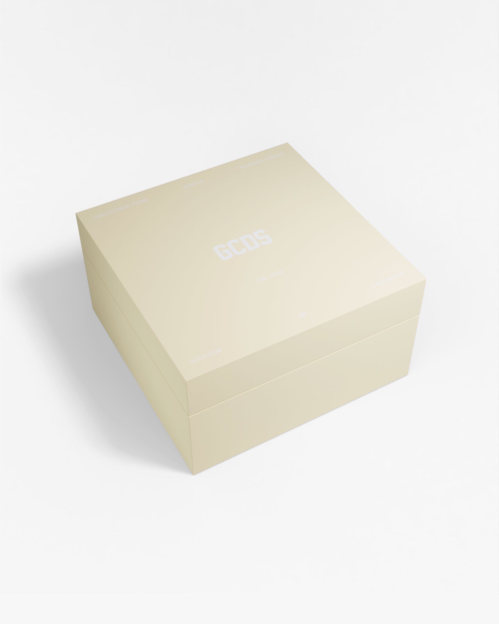 The Gcds logo candle is crafted from vanilla-hued wax. The candle featuring notes of Vanilla, one wood wick and comes with a Gcds costumized gift box.