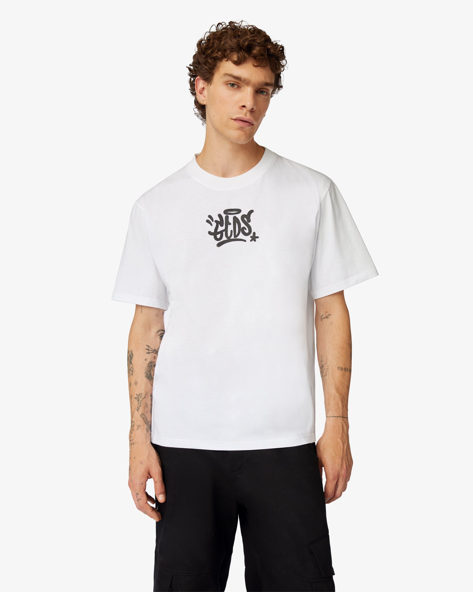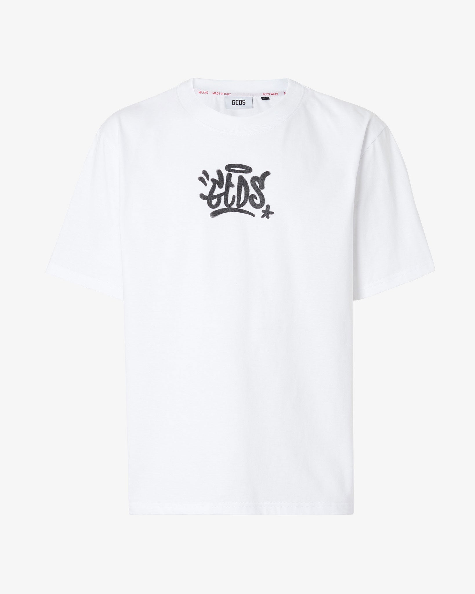 Cotton T-shirt with round neck and short sleeves. Contrasting black "GCDS Graffiti" print on the front. Regular fit.