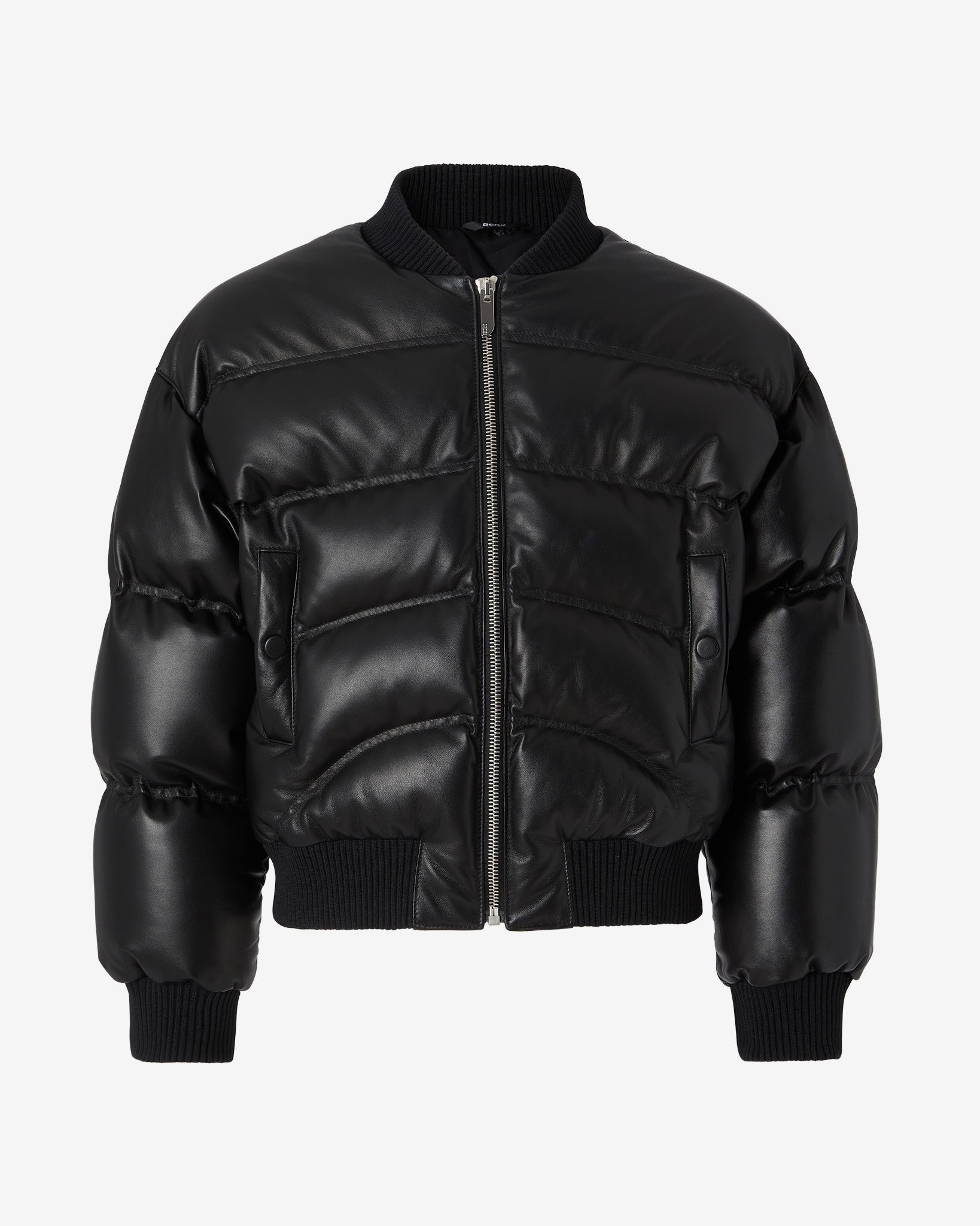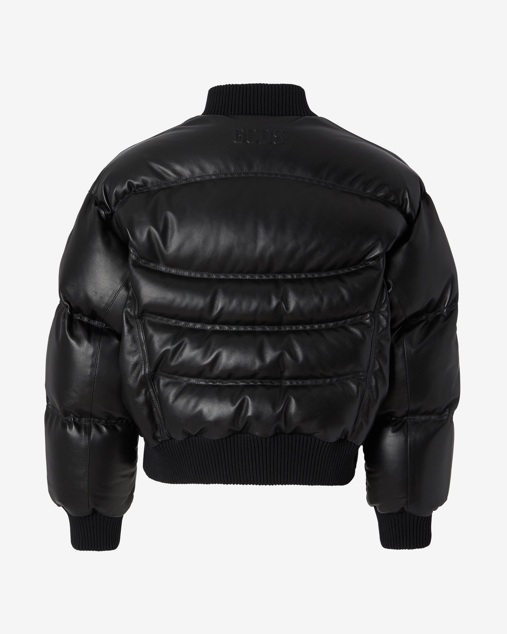 • Load image into Gallery viewer, Leather Puffer Bomber | Men Coats & Jackets Black | GCDS®