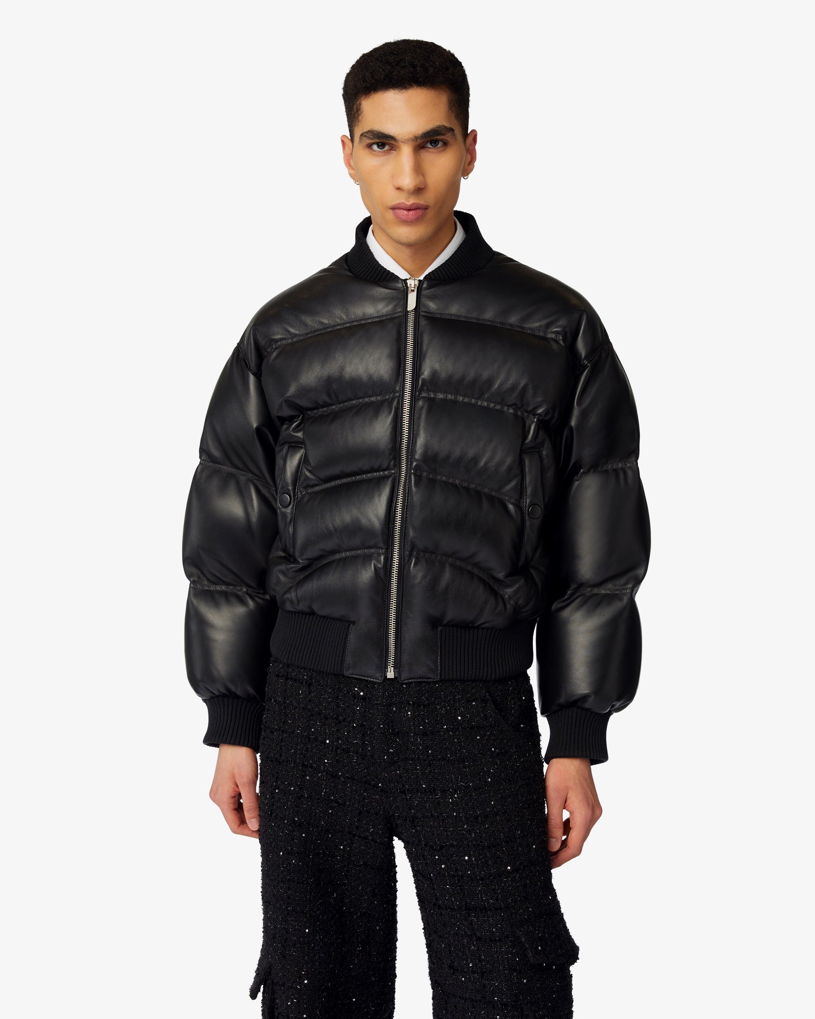 Leather Puffer Bomber | Men Coats & Jackets Black | GCDS®