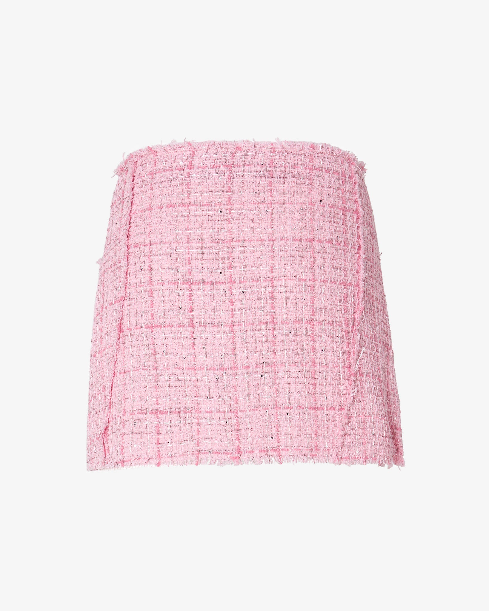 Mini skirt in a feminine silhouette made from cotton-blend tweed, embellished with bright sequins. Front closure with tone-on-tone nacre logoed buttons.