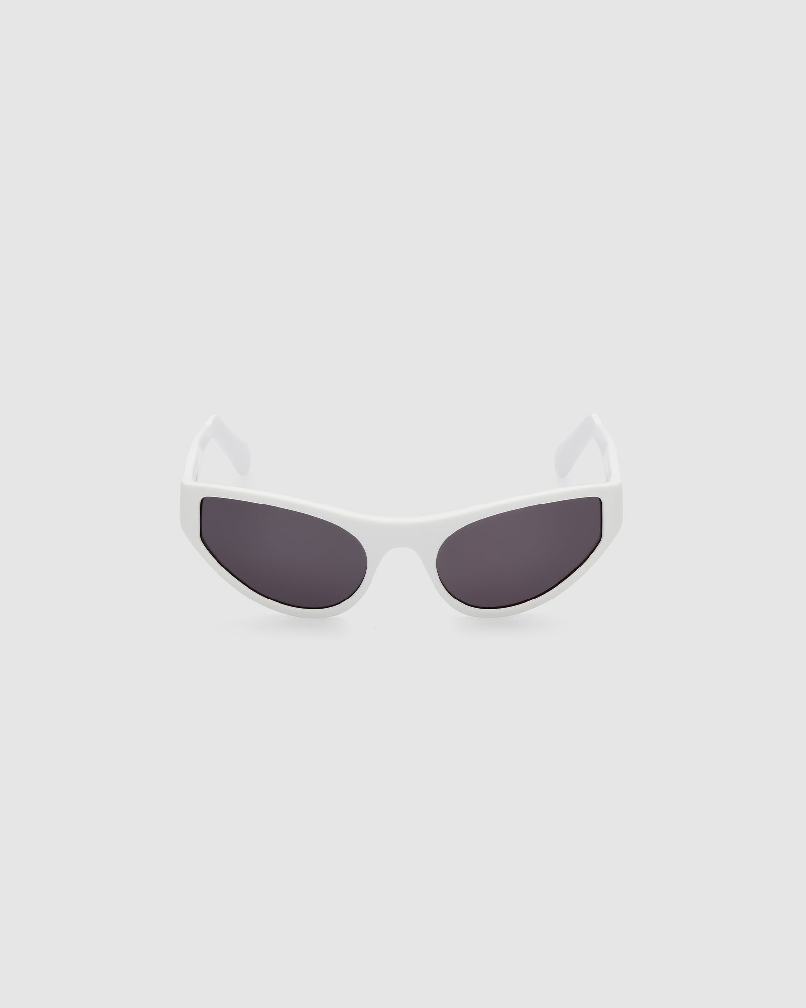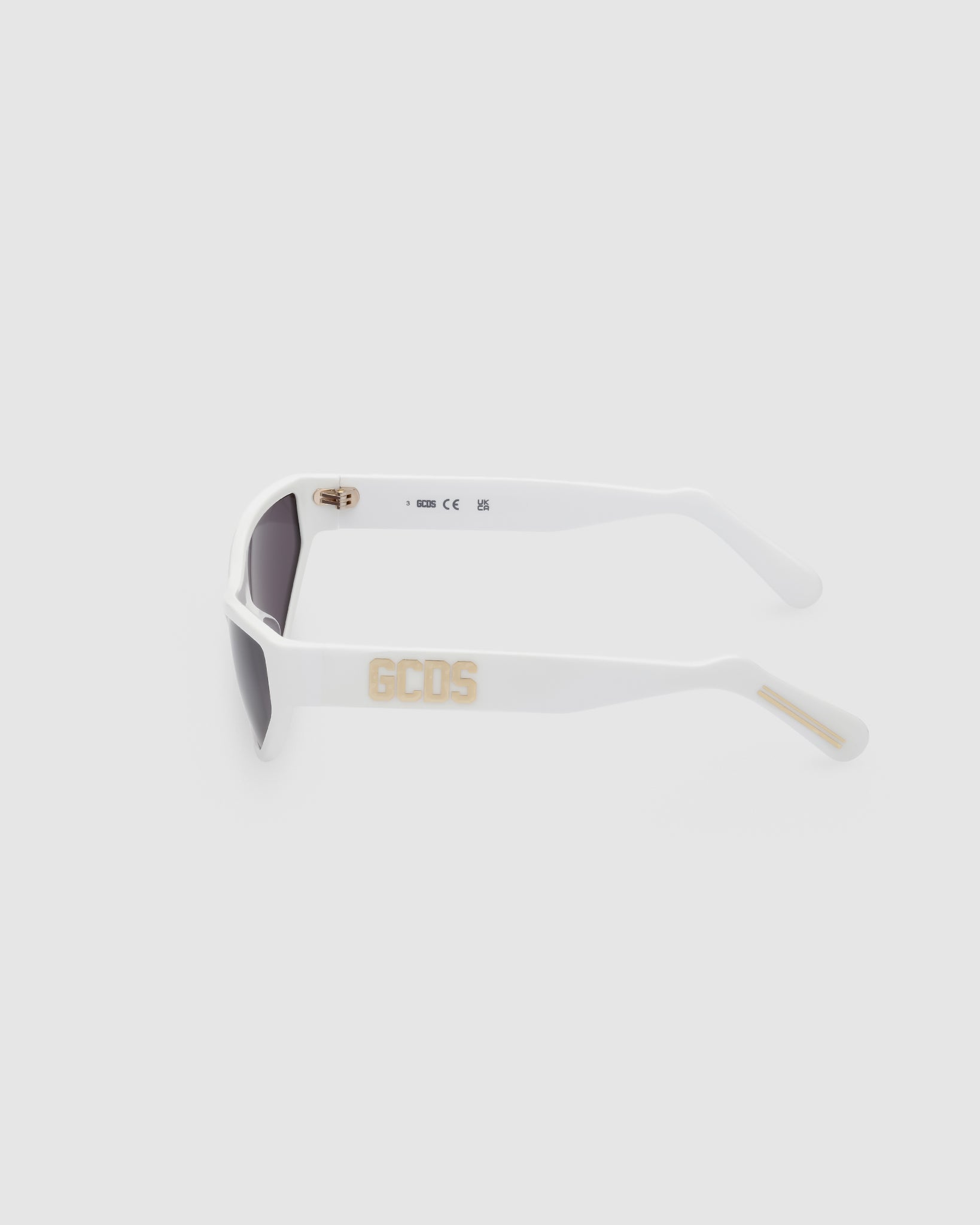 Cat-eye acetate frame with an exclusive geometric front construction. GCDS metal logo and the brand’s iconic stripes on the lateral profile.
