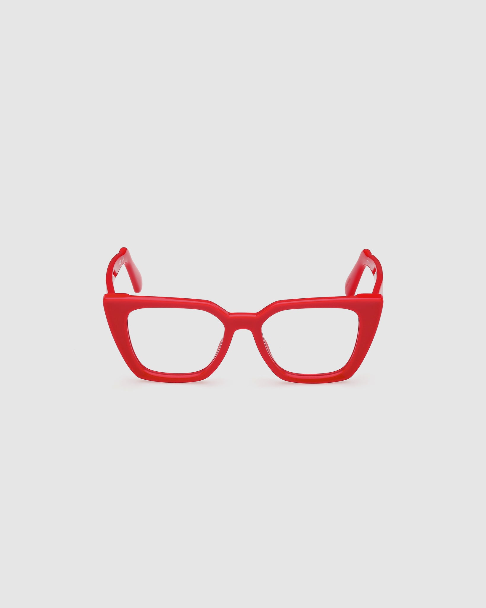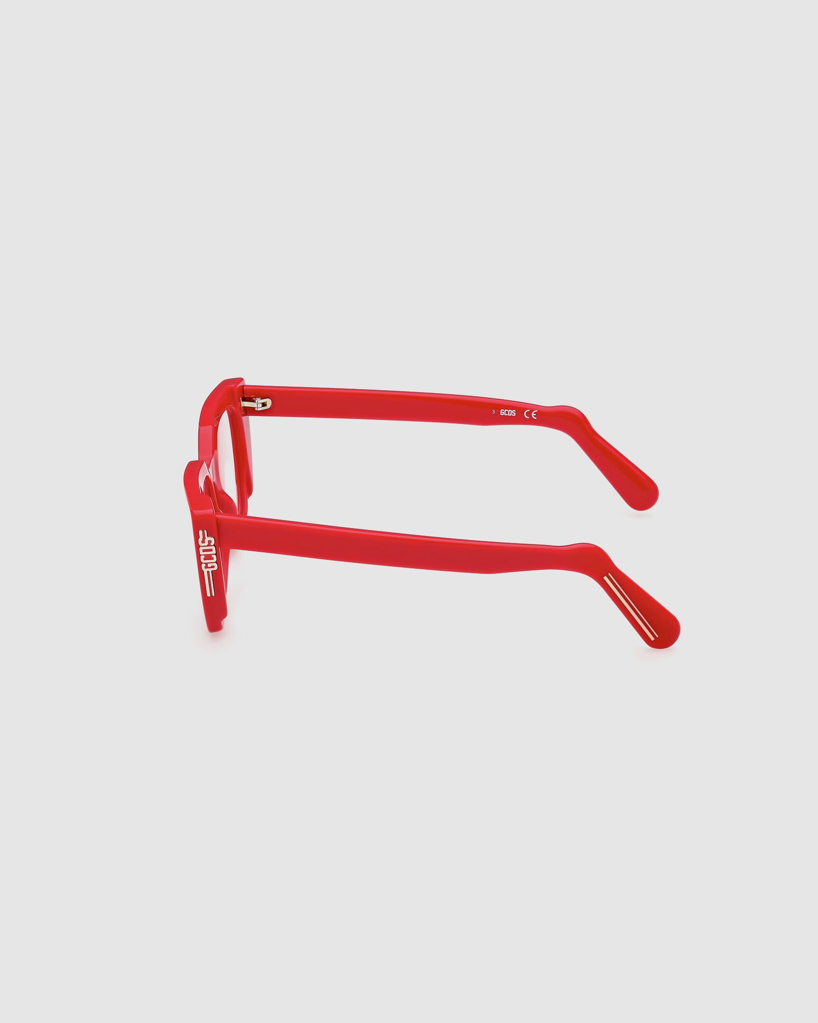 Acetate style characterized by a trendy cat-eye shape. The style is enriched by the really distinctive structure with the GCDS metal logo on the sided profile of the eyeglasses.