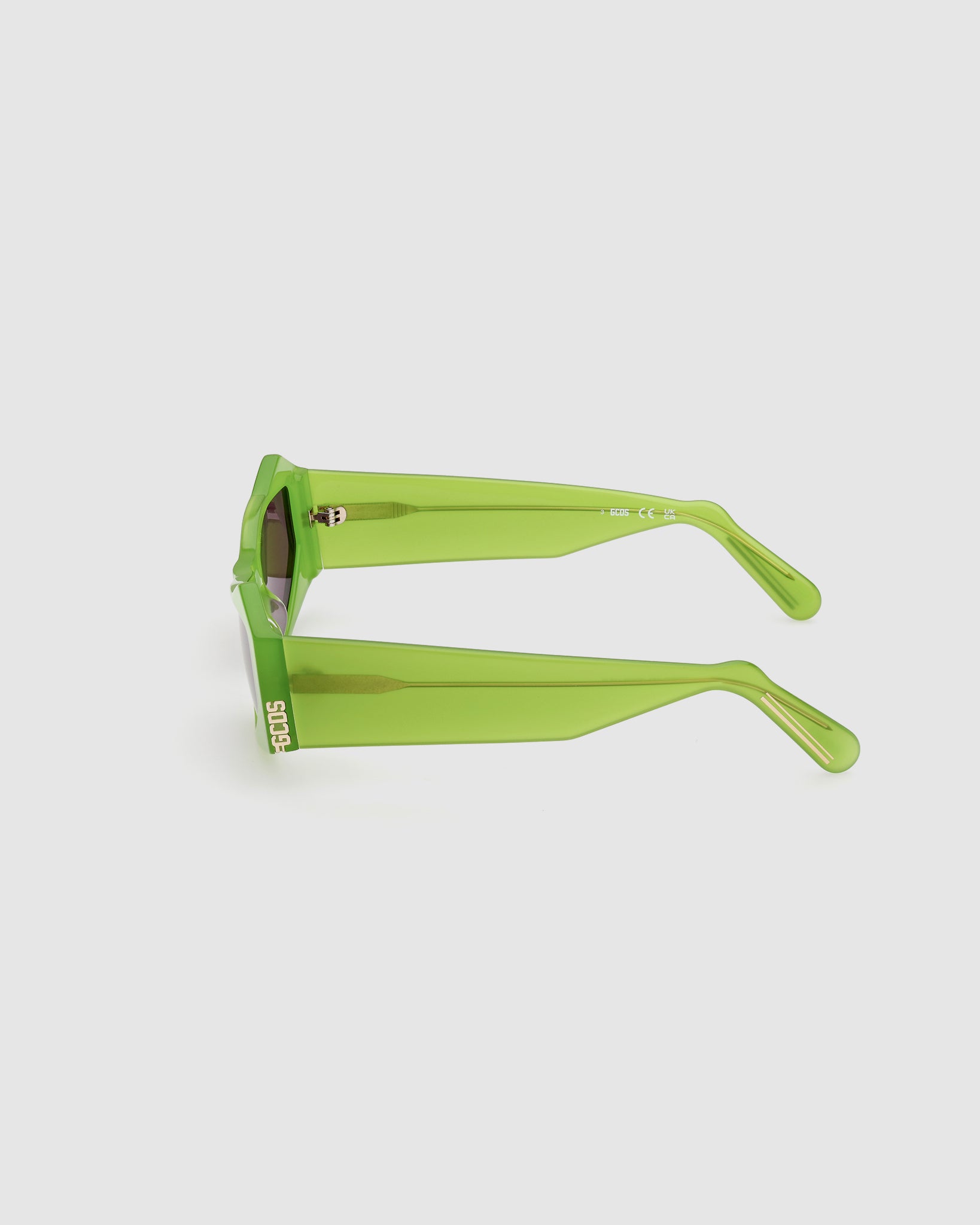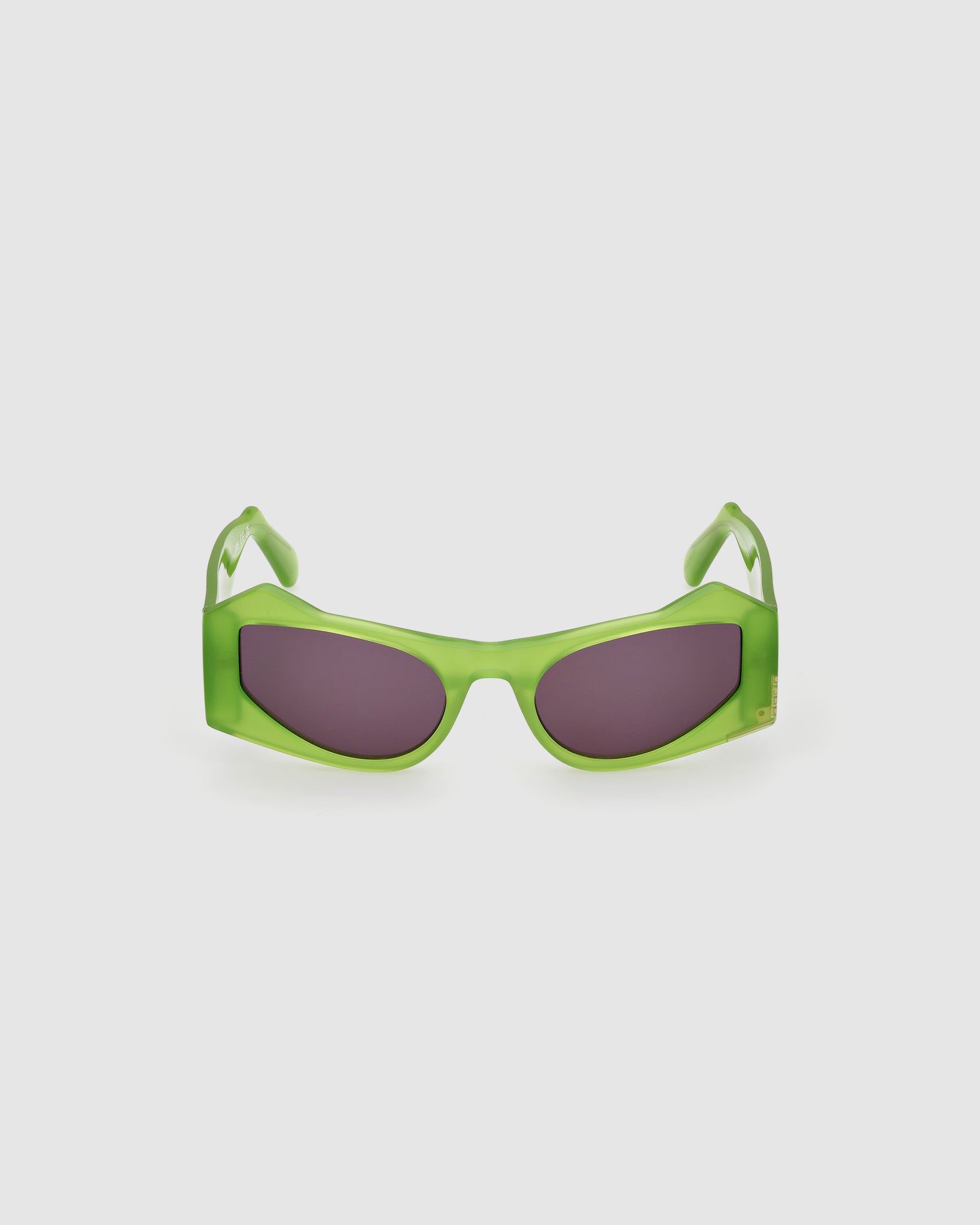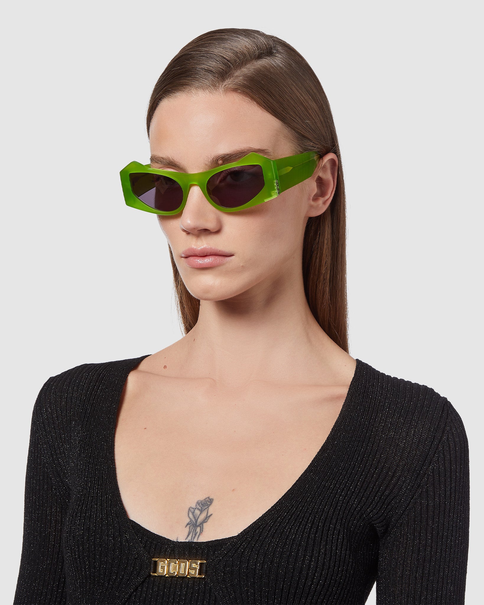 Cat-eye acetate frame with an exclusive geometric front construction and GCDS metal logo on the lateral profile.