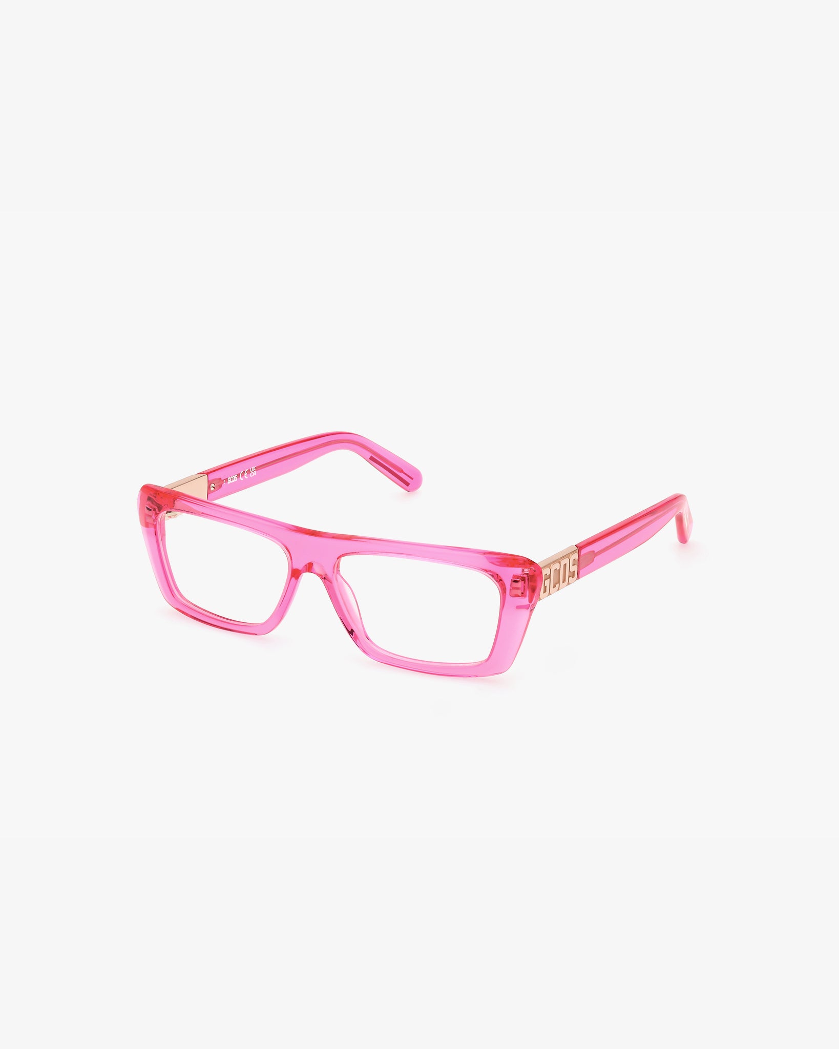 GD5018 - Acetate style characterized by a trendy Cat-eye shape. The metal temples are embellished by the iconic GCDS logo and acetate temple tips.