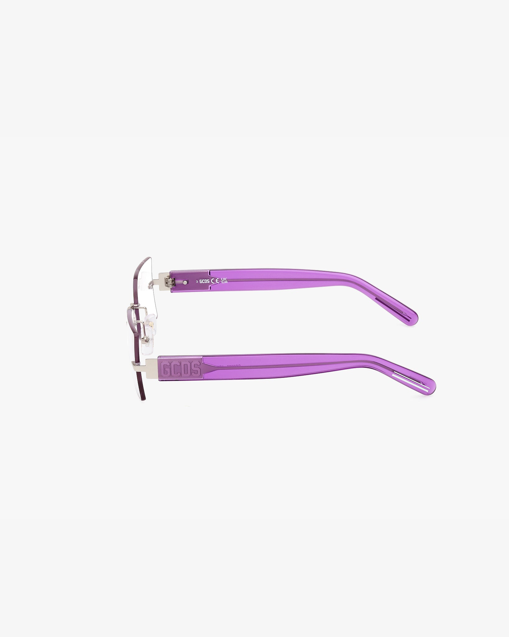 This style boast a sophisticated rectangular silhouette and fine metal temples, embellished with the GCDS logo and acetate temple tips.
