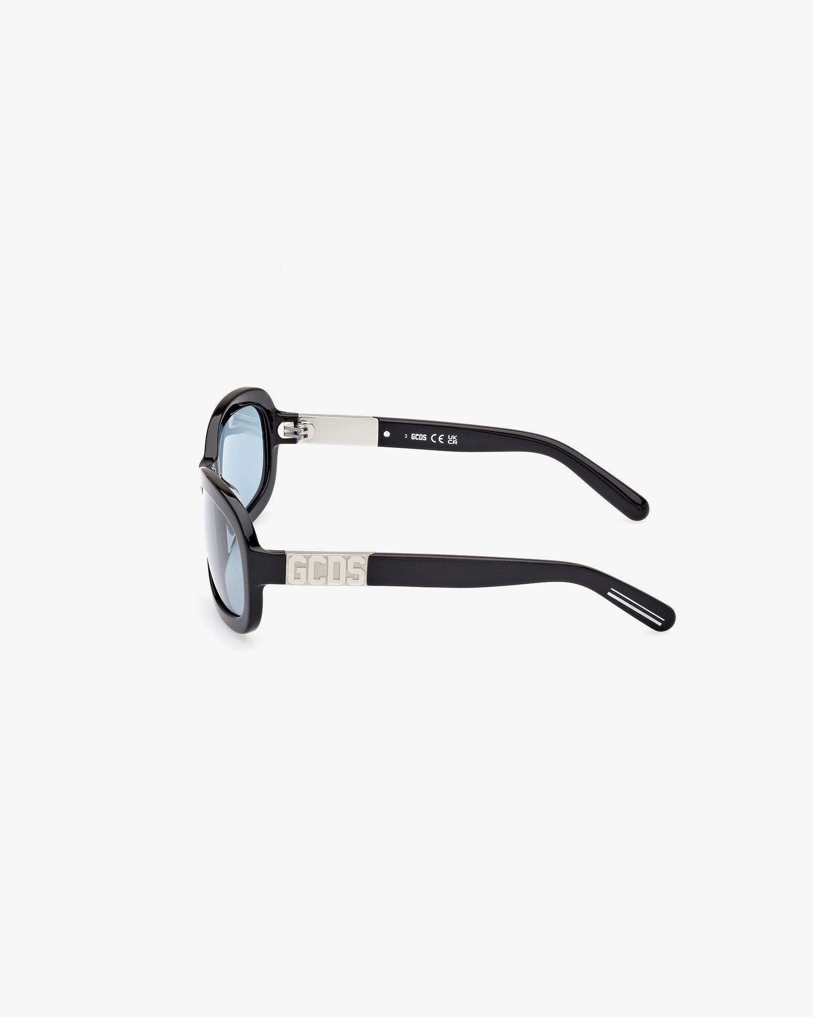 Enriched by the really distinctive structure with the contrast of the wide front and the thinness of the temples. The temple is characterized by a “Gold bar” with GCDS embossed logo.