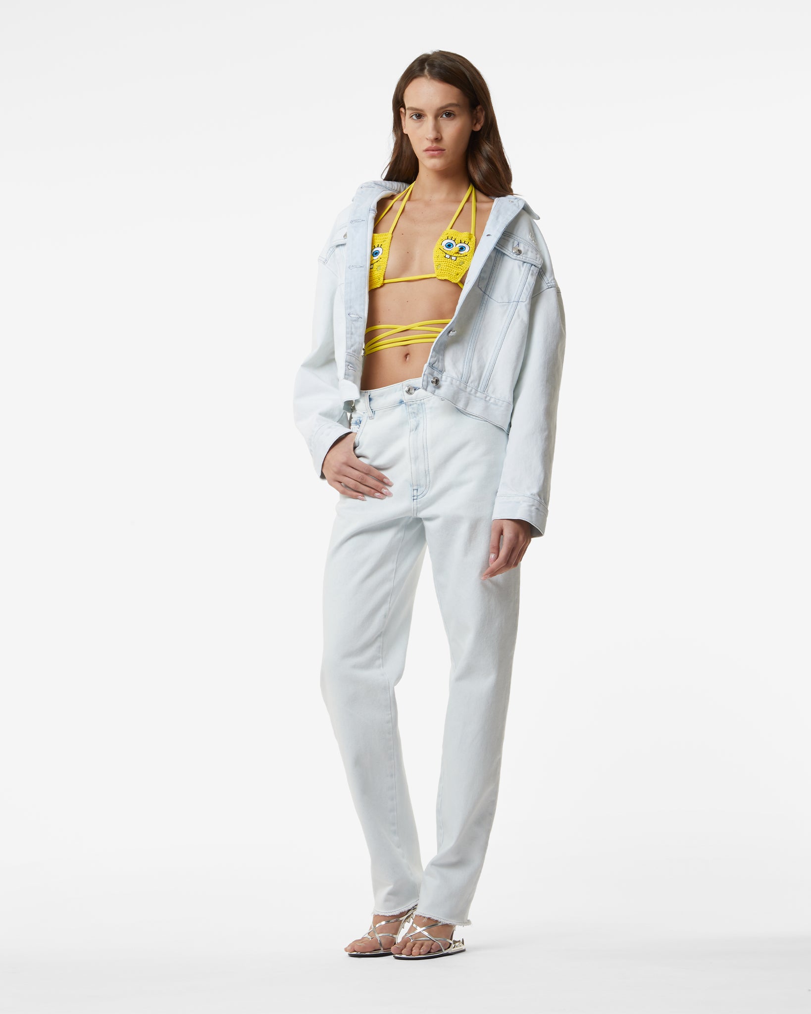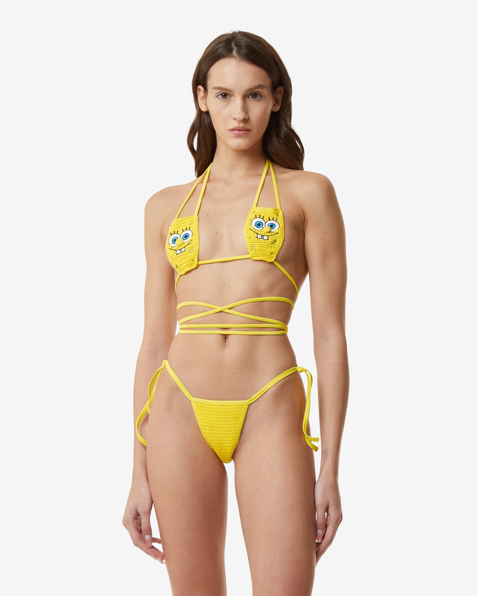 Cross over cotton crochet bikini. Bra with GCDS x SpongeBob crochet cups and embroidery with 3D elements. Tone-on-tone Lycra trim and long ties around the chest.