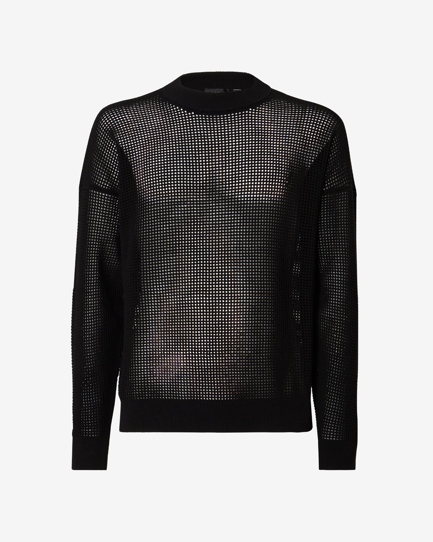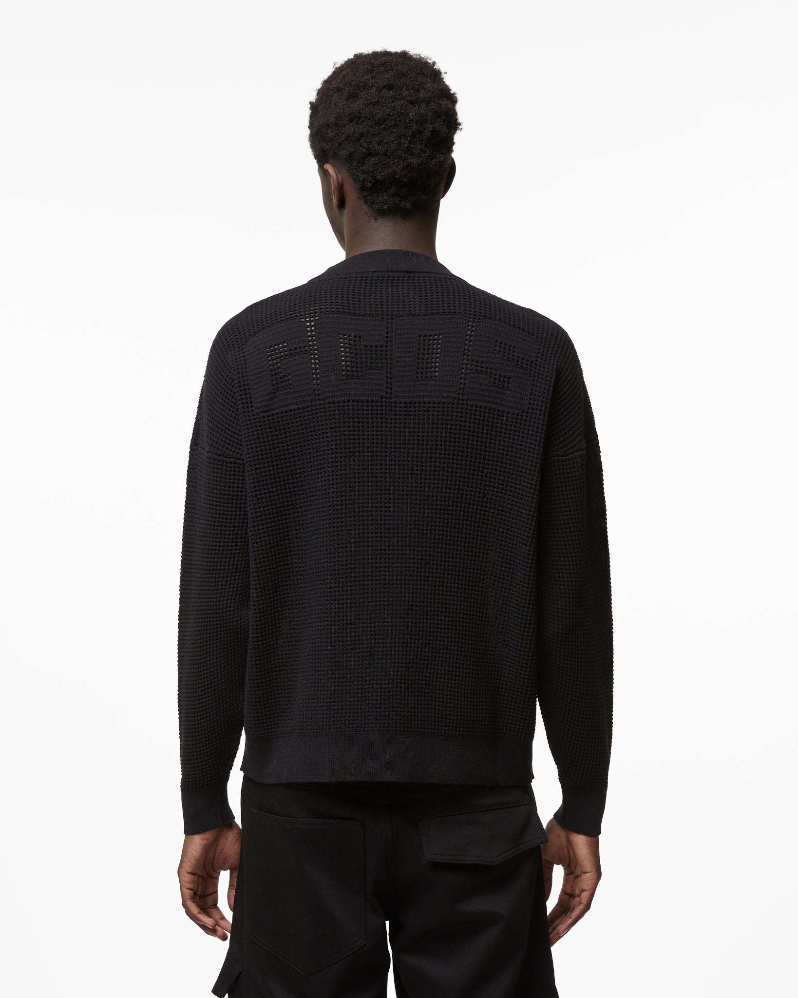 Regular fit see-through crochet effect cotton crew neck cardigan. On the back, opaque GCDS logo.