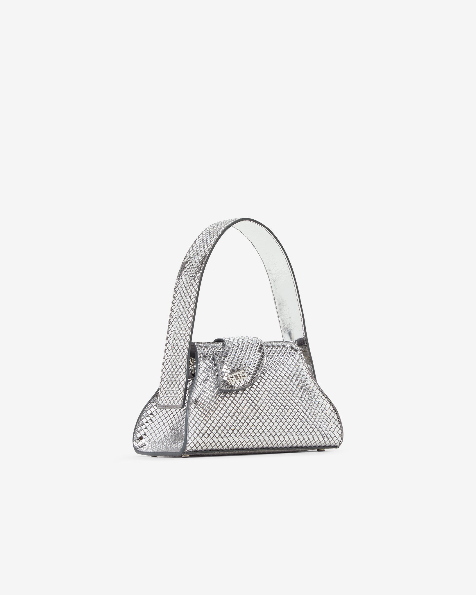 In split leather and thermo-application of square rhinestones crystal color on the whole body of the bag.