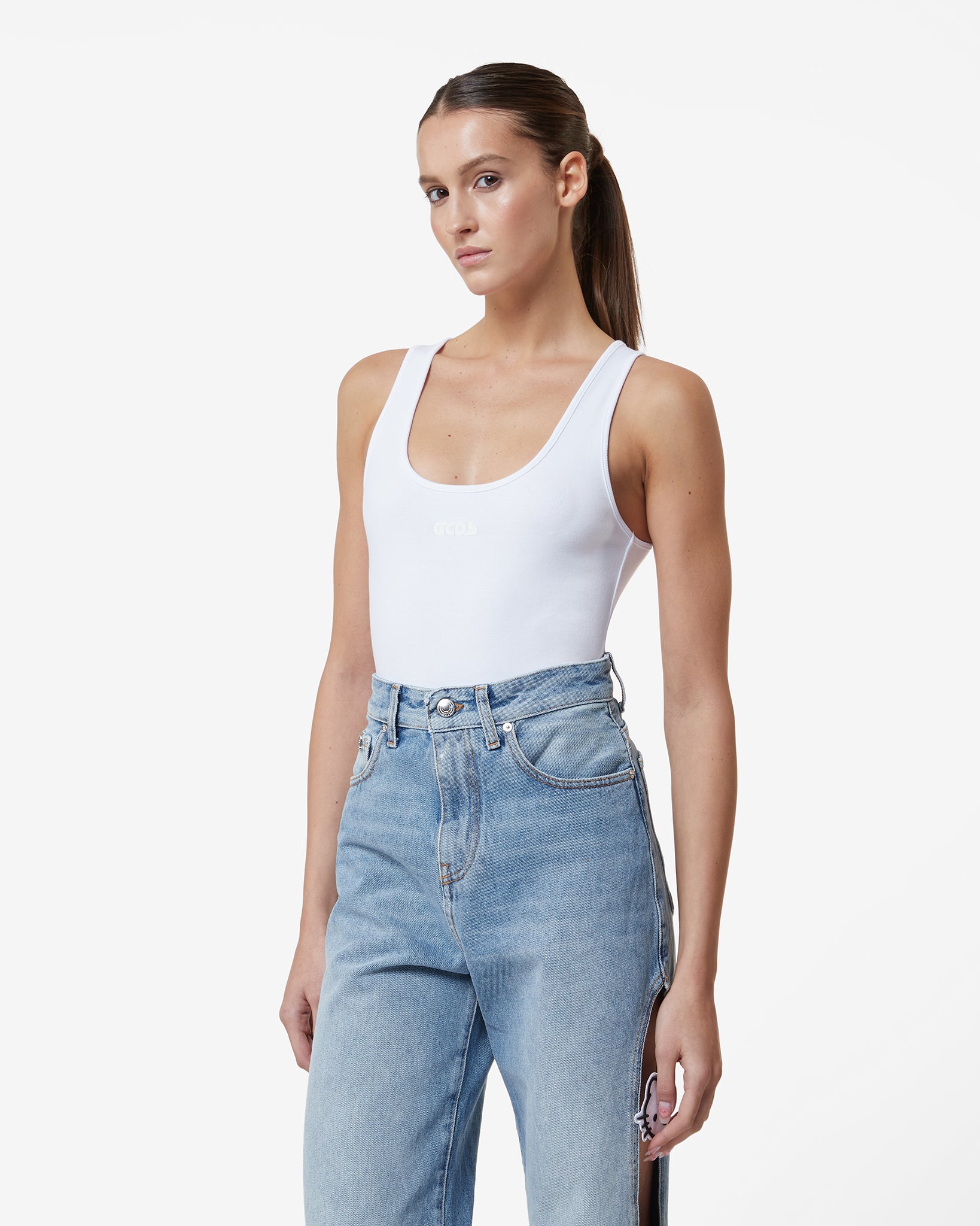 Sleeveless cotton bodysuit with thick GCDS logo print on the front.